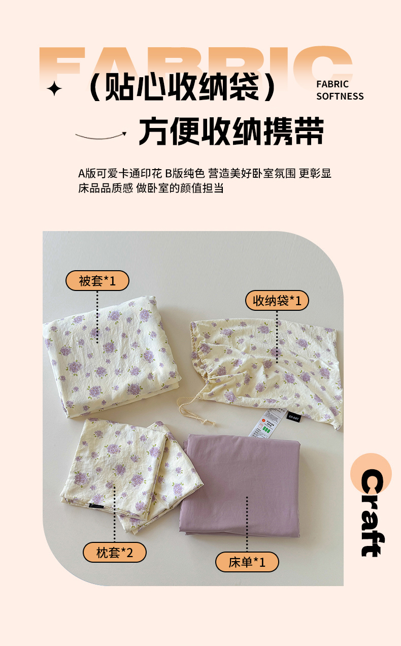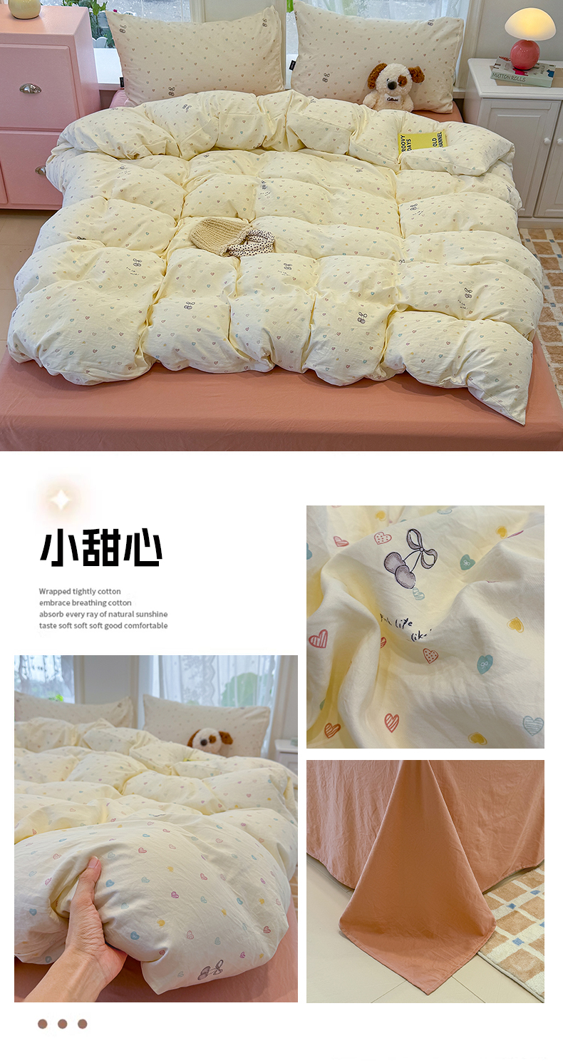 (总)竹合家纺 2026新款春款A类古法水洗仿棉云感棉小布袋四件套,阳光花园,蜜恋樱桃,夏日初恋,KT小鱼,格子小熊,卡吉米,云谣,童趣,花园小免,波点气球,小幸福,礼物狗狗,甜心小狗,兰枝玉树,千野合,星星蓝格,蓝岛风铃,靜听花开,山月铃兰,晚樱落落,七彩波点免,伊水芙蓉,郁金香园,蝴蝶结粉,半页诗,吉米兔紫,拘狗乐园,山樱漫岛,牟溪明月,花枝,樱川桃井,灰条樱桃,小伙伴