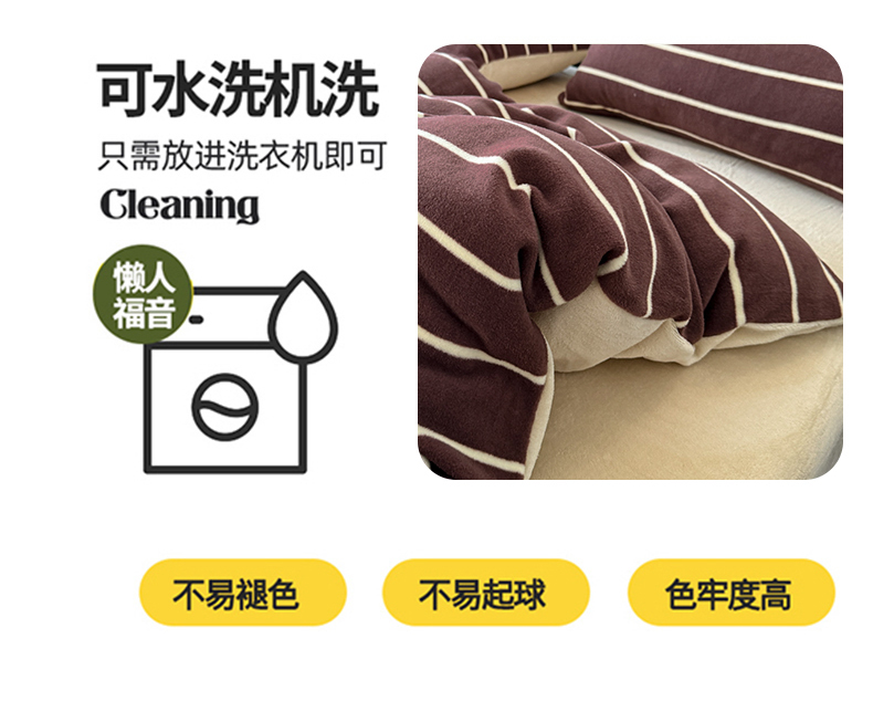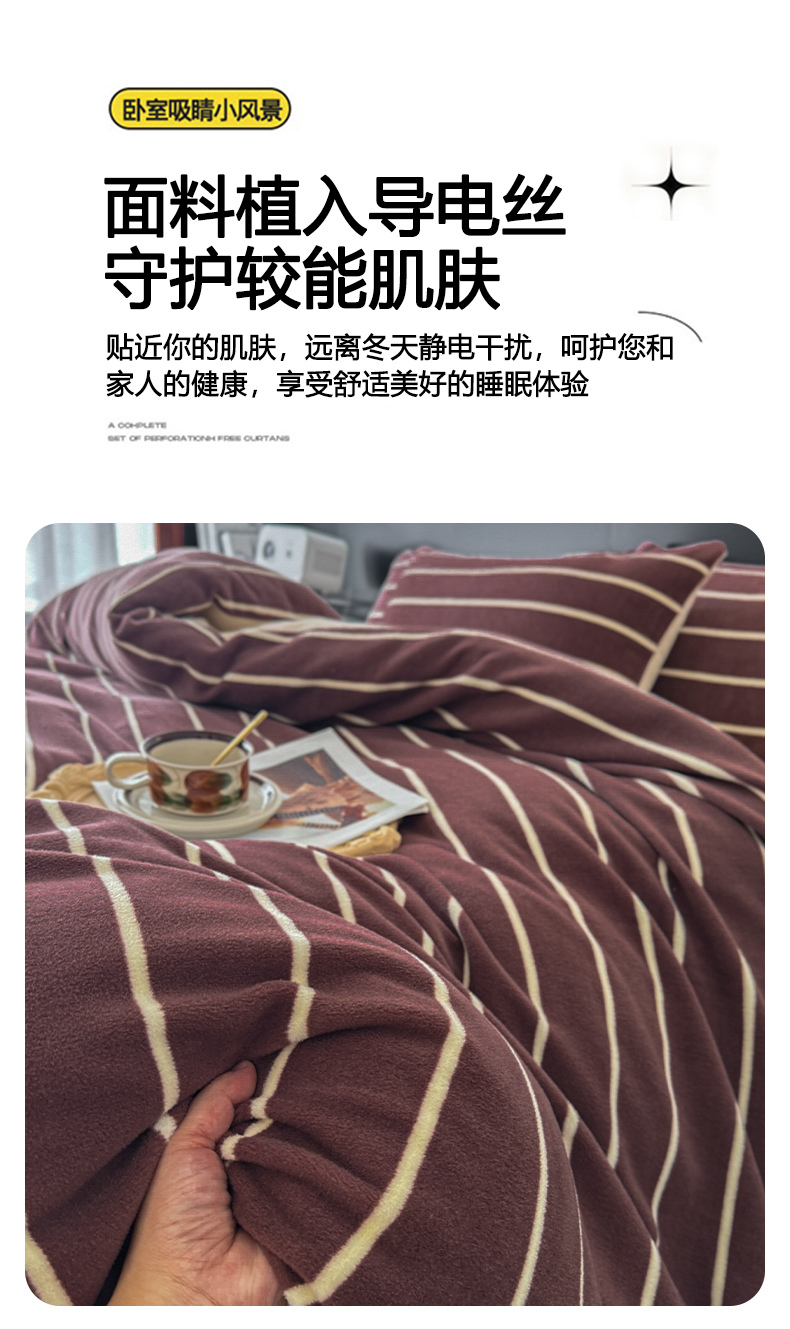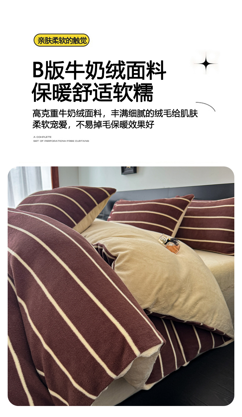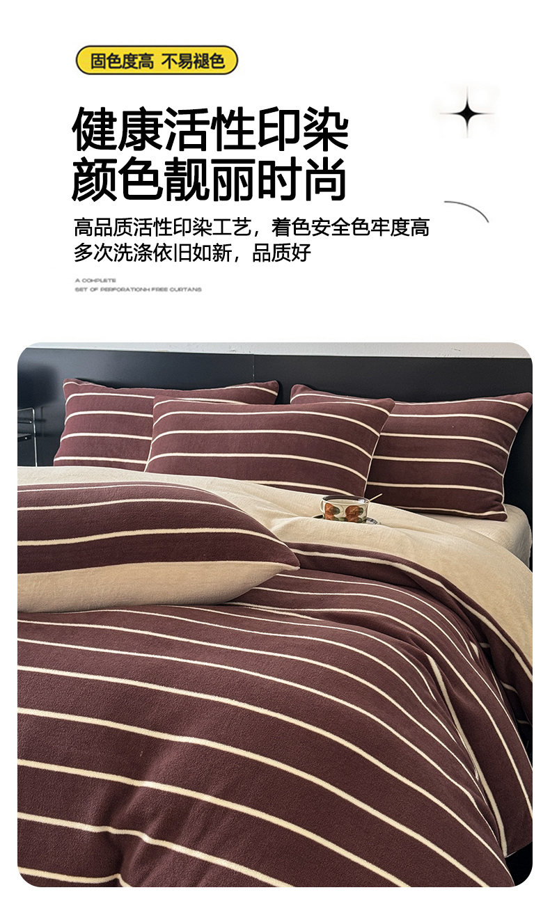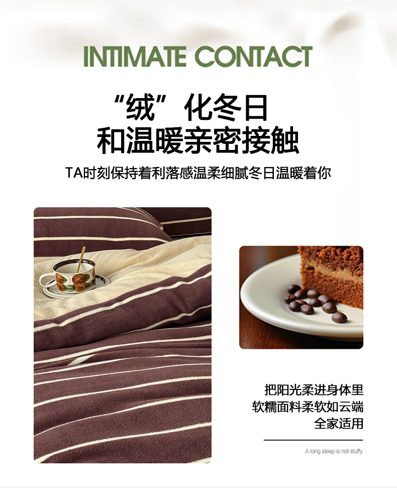 (总)子曰 2025新款A类高克重蒂肤绒羊绒保暖印花四件套,绿条纹-棕,玫瑰物语-灰,沐光-粉,沐光-咖,柔梦-咖,叶恋-棕,紫条纹-浅米,小樱桃-红