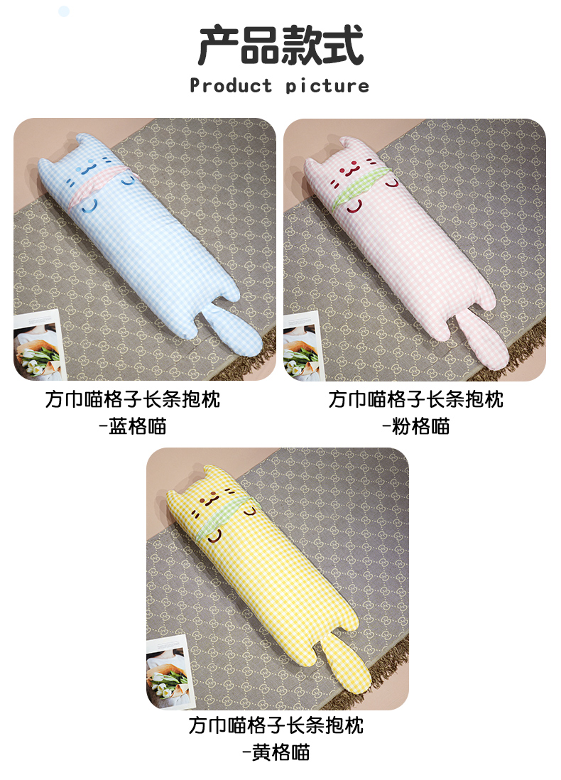 当前位置: 91家纺网 > 商品网购 > 居家日用 > 靠垫/抱枕 > 仟亿莱 2025新款格子方巾喵长条睡觉抱枕 黄格方巾喵