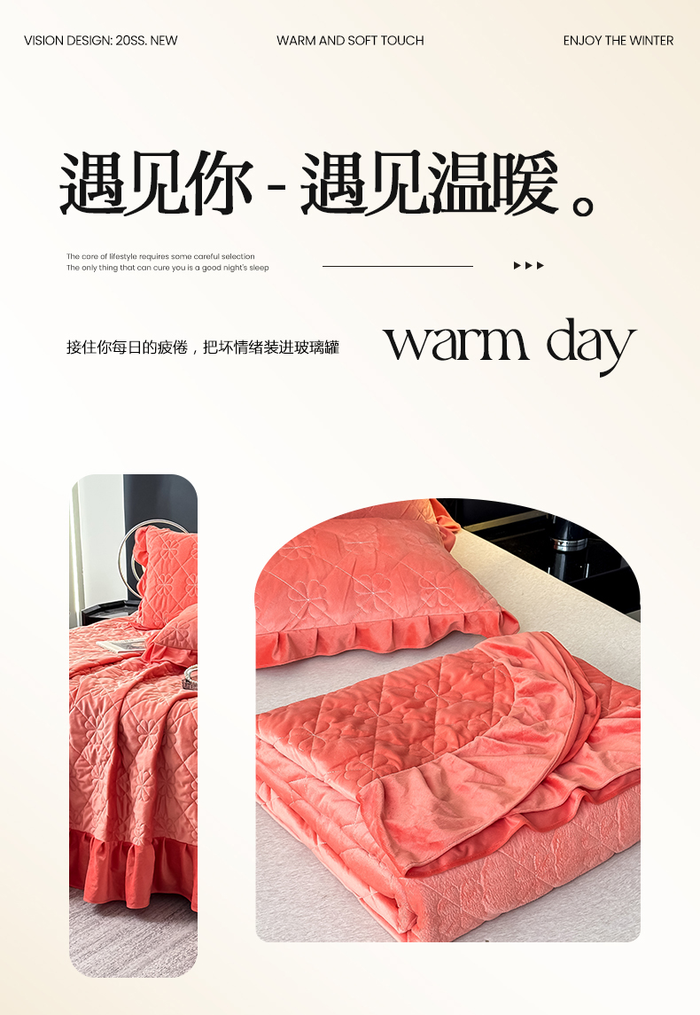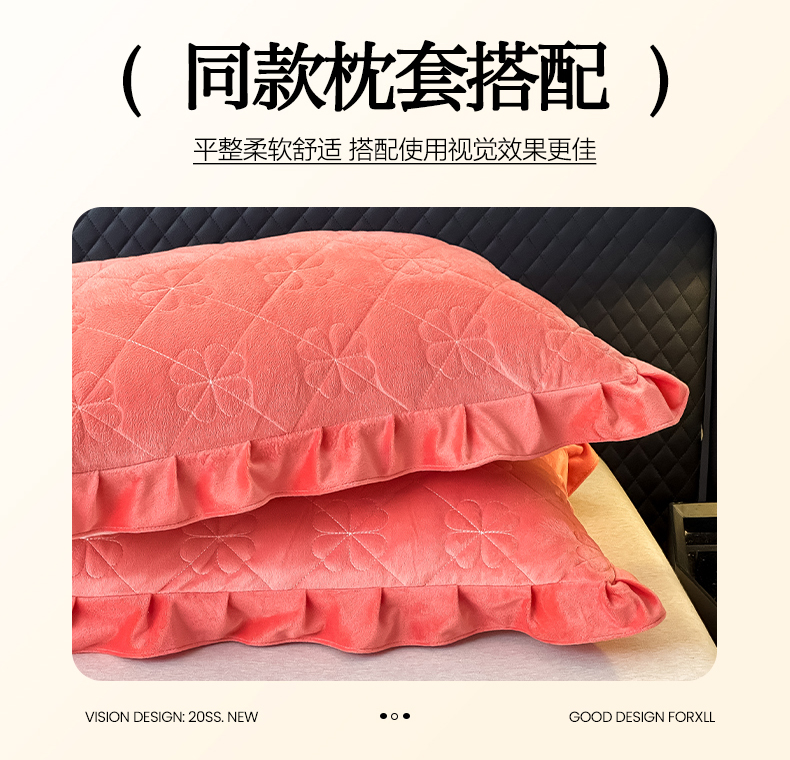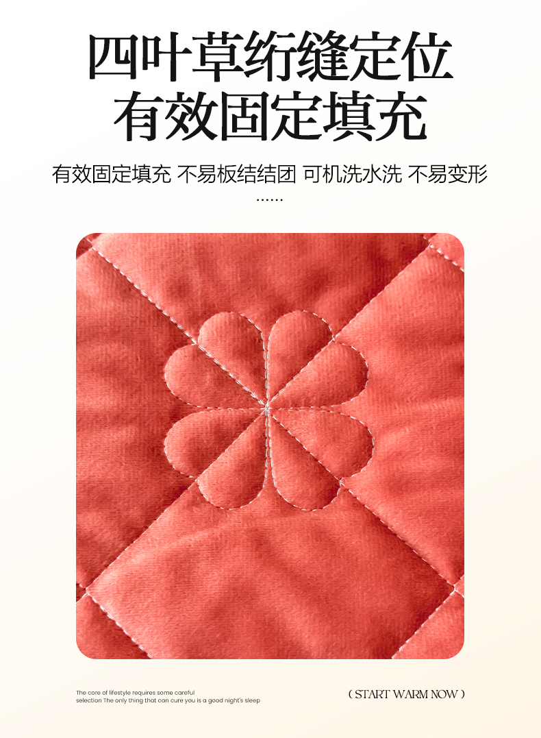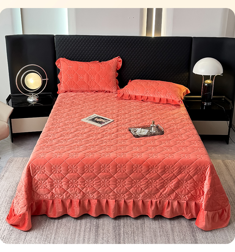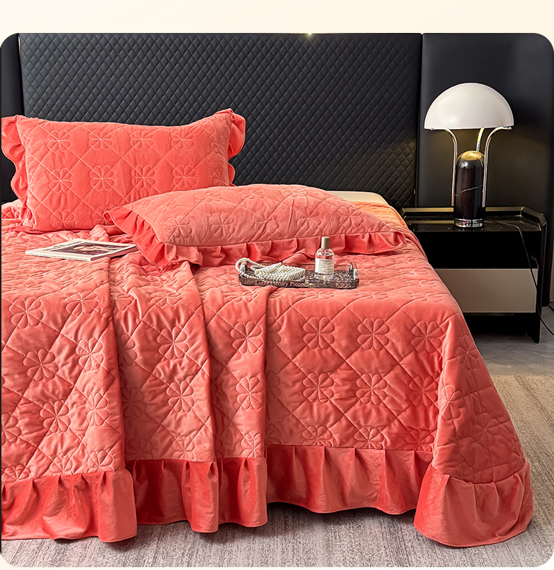 • 91家纺网 家纺一手货源 找家纺 鑫利来家纺 2025新款高克重水晶绒夹棉床盖三件套-四叶草系列 四叶草-暖桔