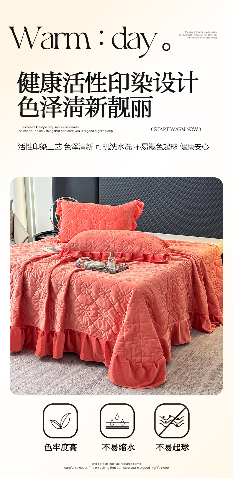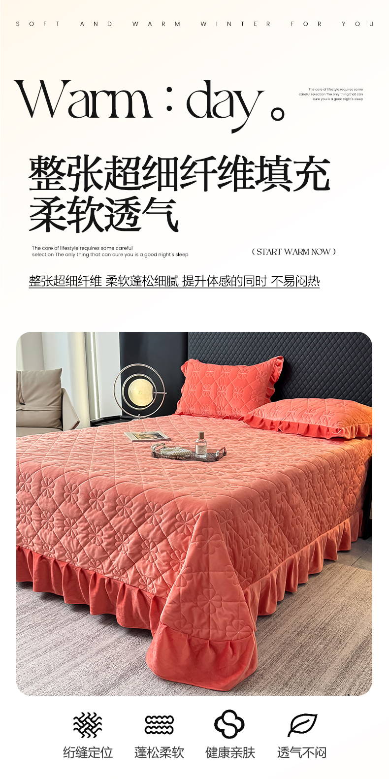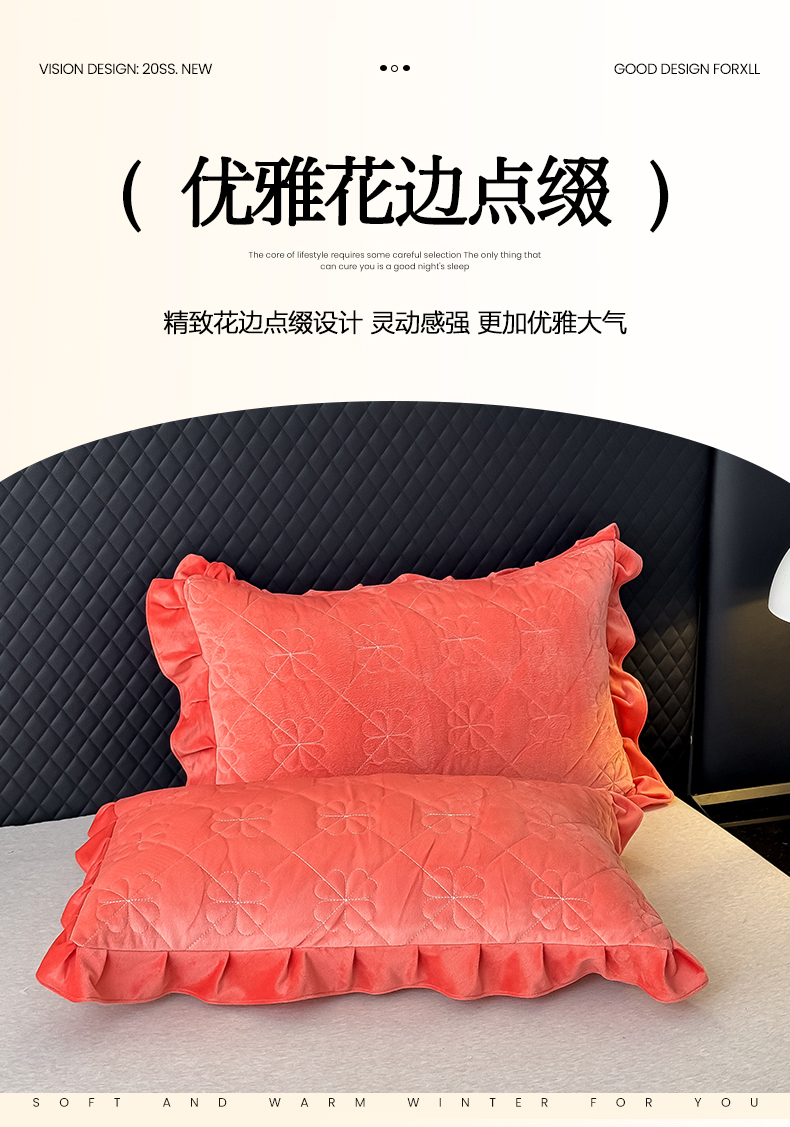 • 91家纺网 家纺一手货源 找家纺 鑫利来家纺 2025新款高克重水晶绒夹棉床盖三件套-四叶草系列 四叶草-暖桔