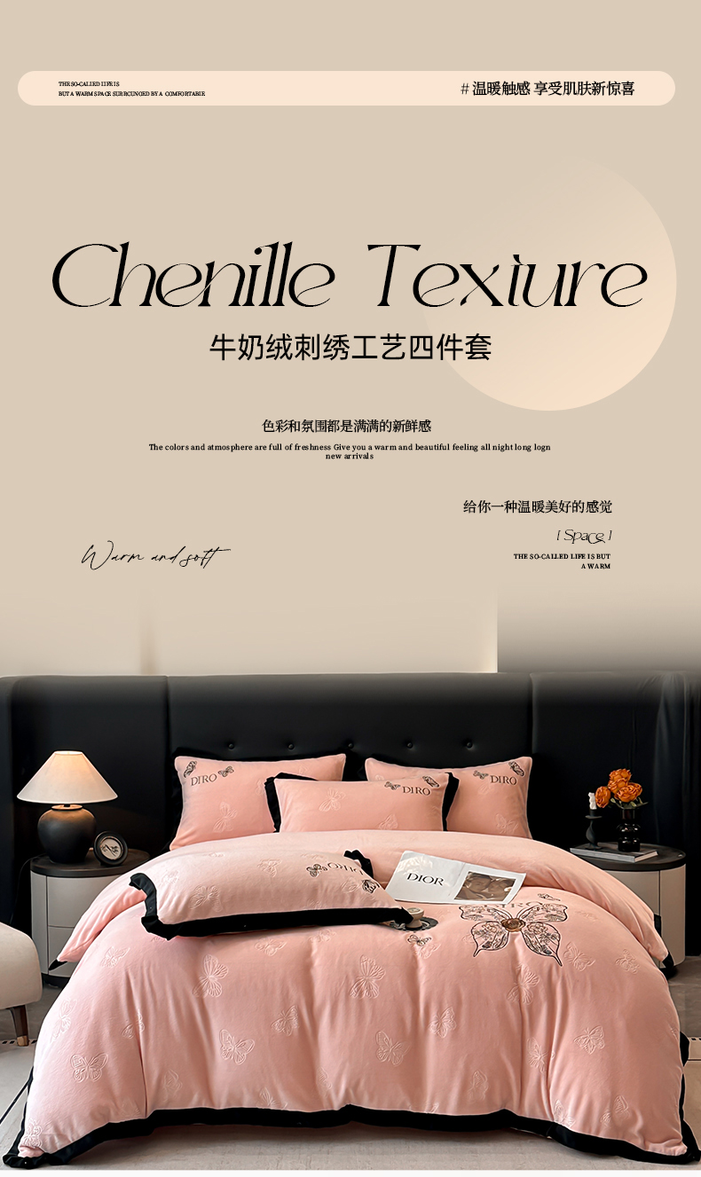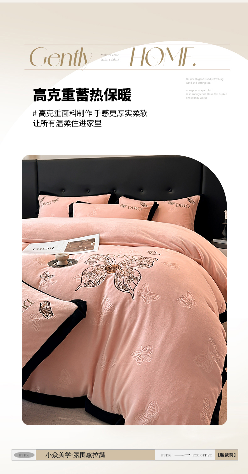 (总)金牛座家纺 2025新款立体雕花加厚牛奶绒刺绣拼接四件套【控价 售价请勿低于158】,花海,春见,蝶林,玫语
