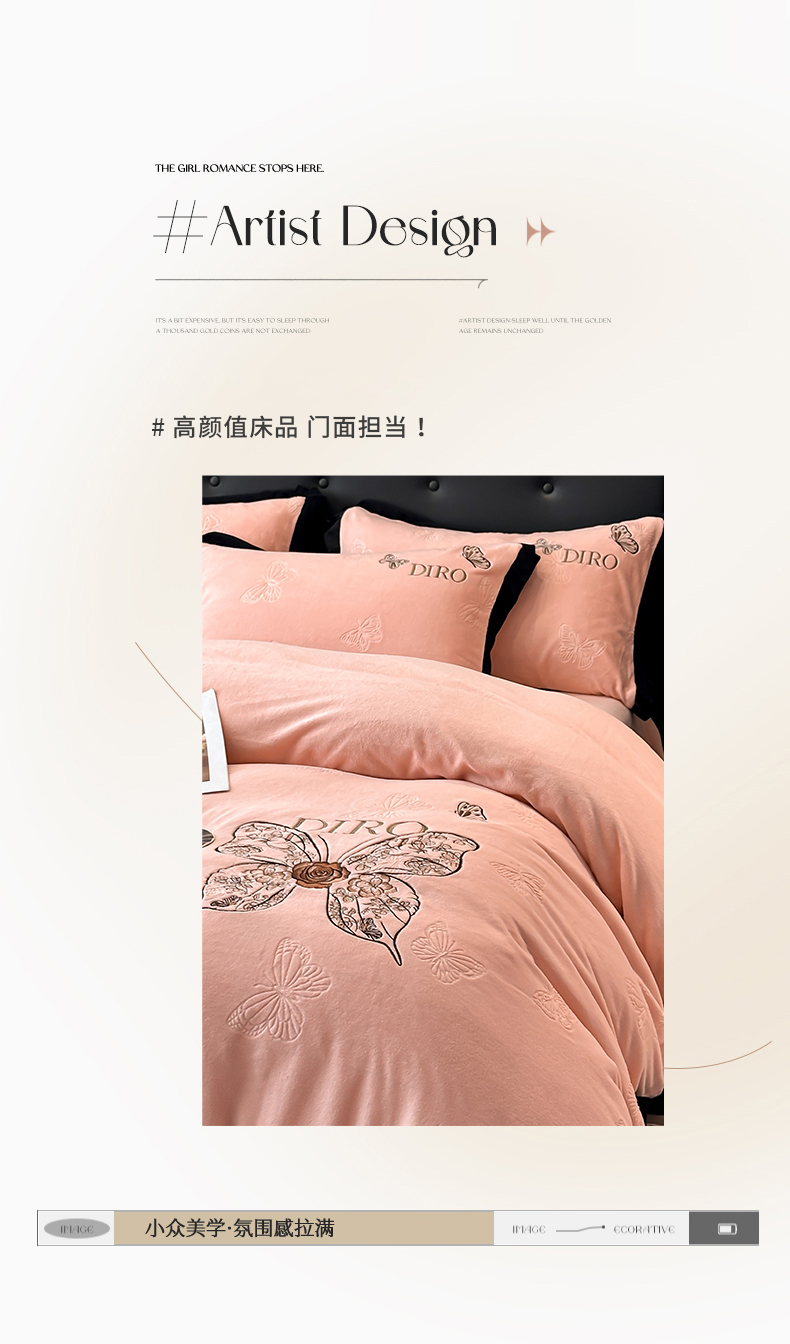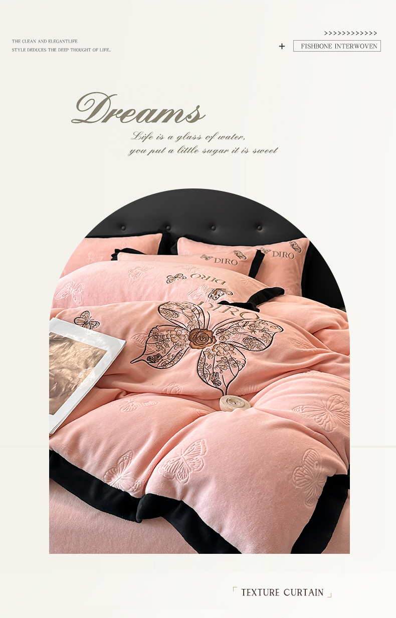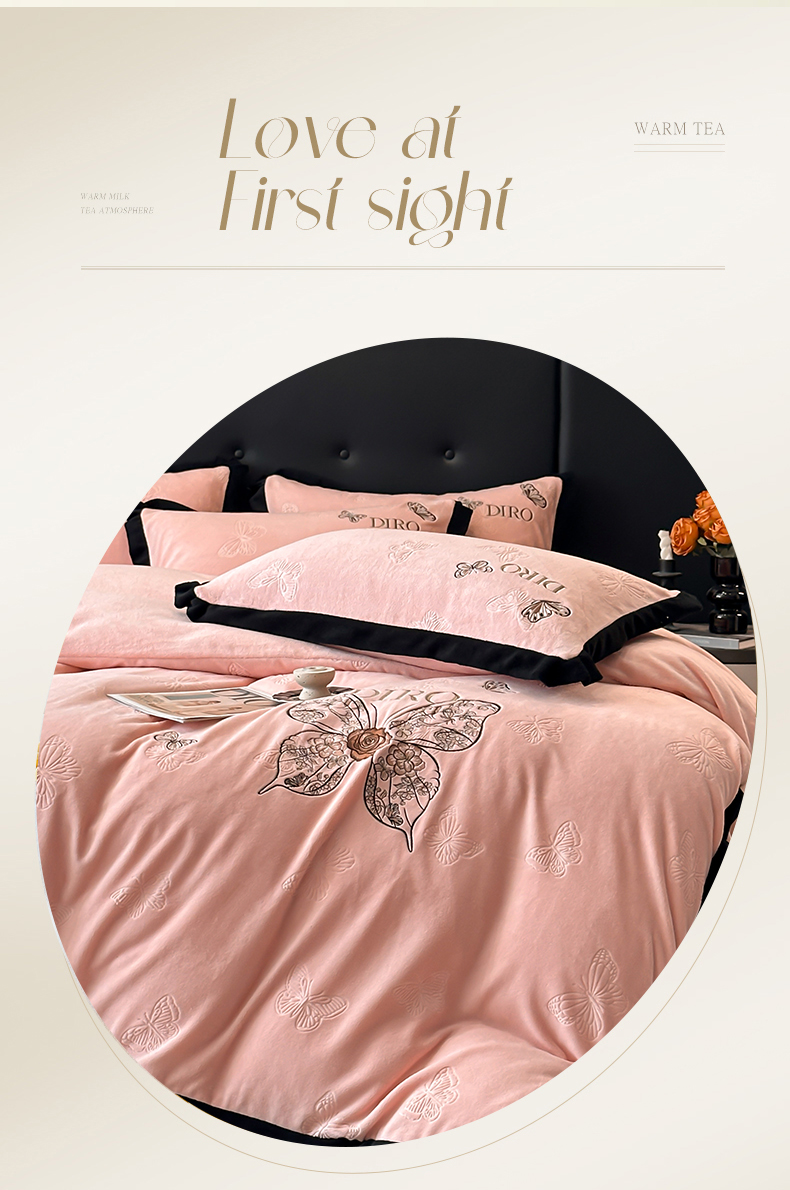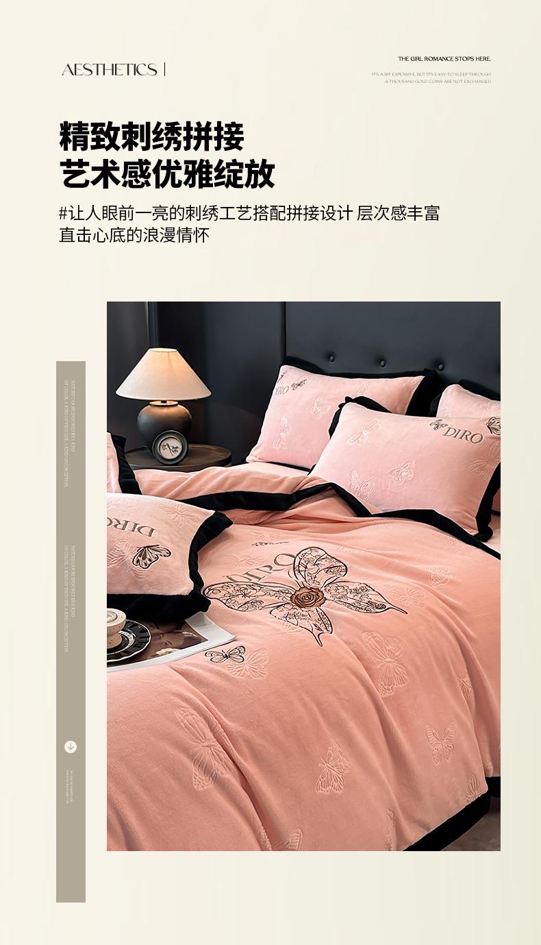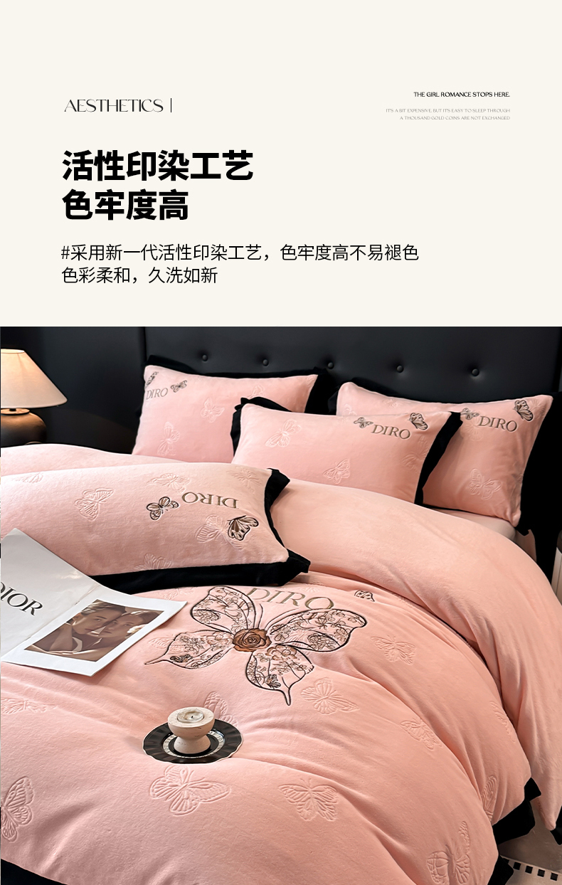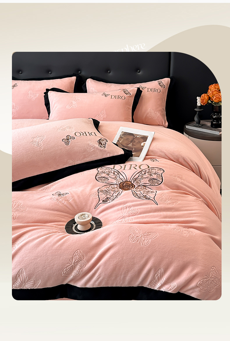 金牛座家纺 2025新款8斤加厚牛奶绒刺绣四件套-蝴蝶飞飞 蝴蝶飞飞-嫩粉