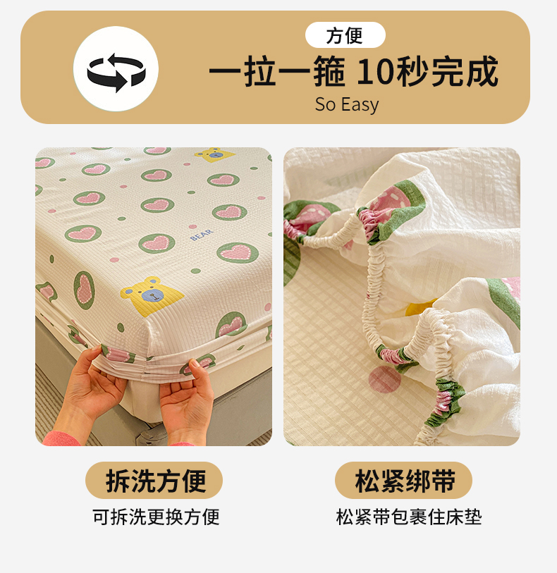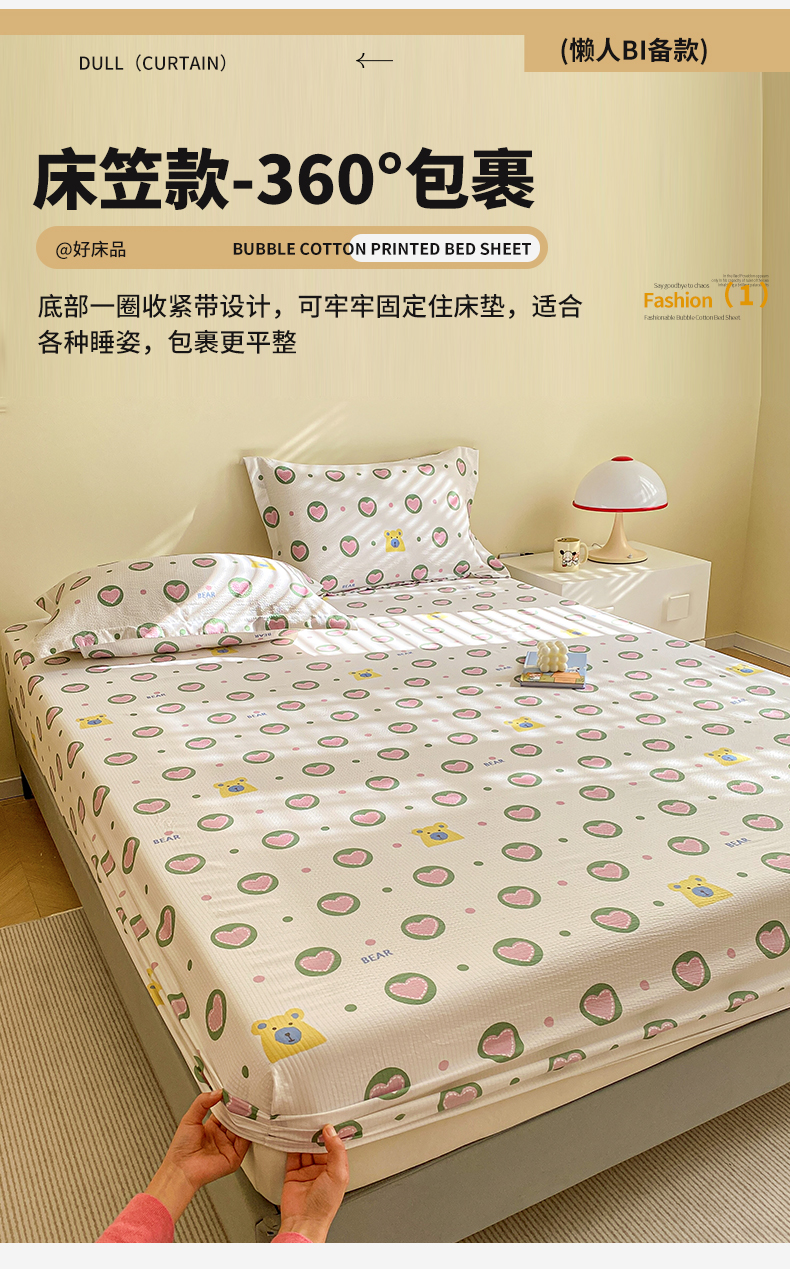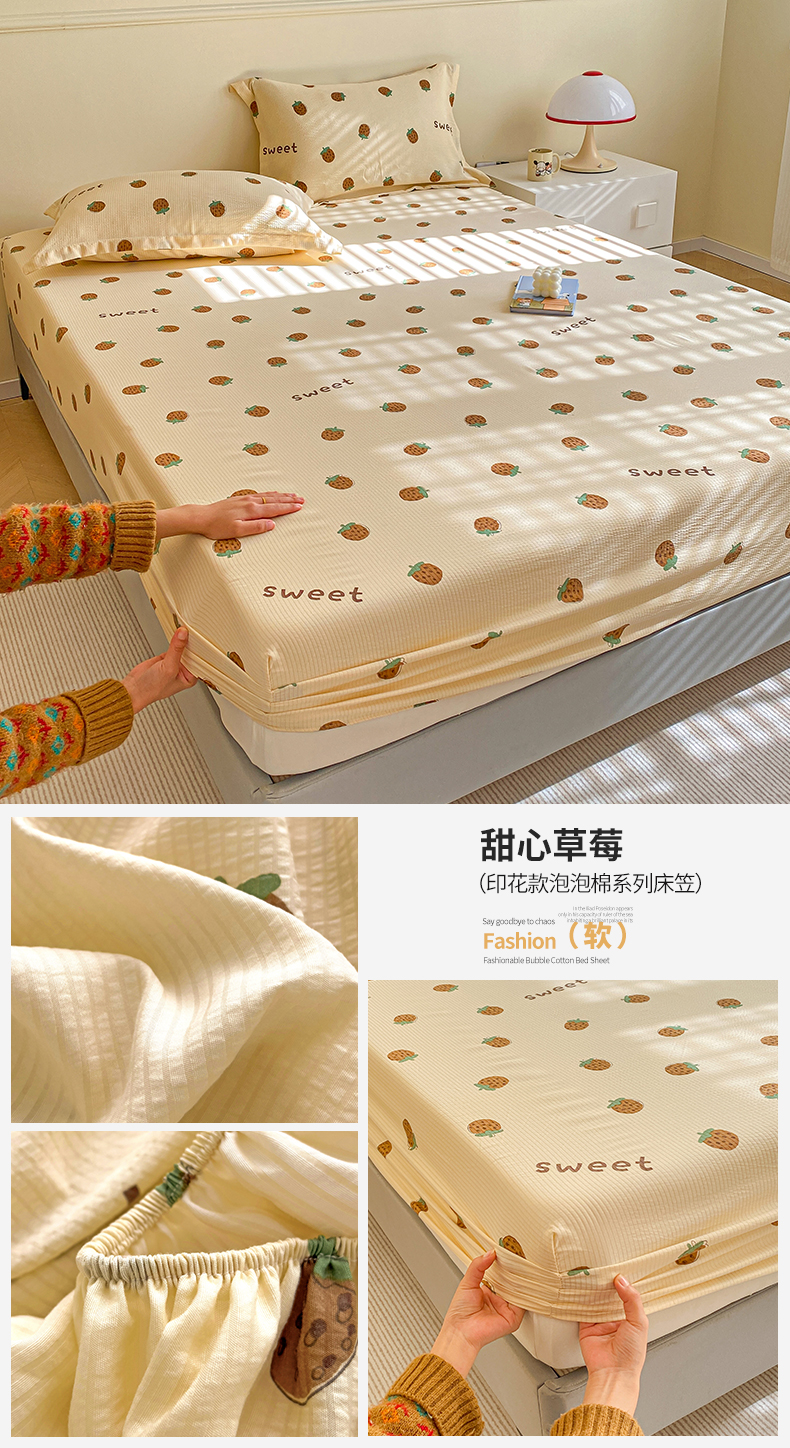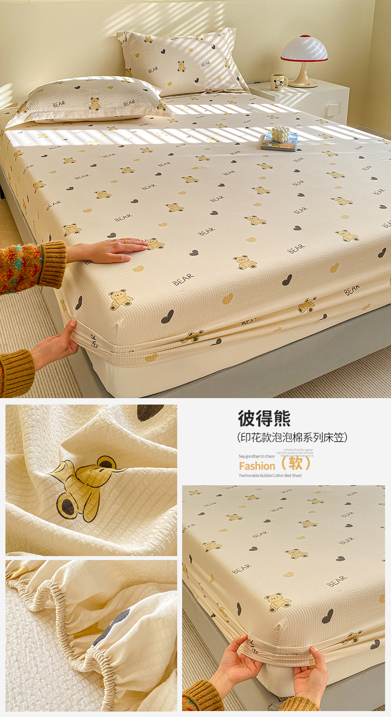 商品名称:(总)恬澳家纺 2025新款A类印花泡泡棉床笠-场景一