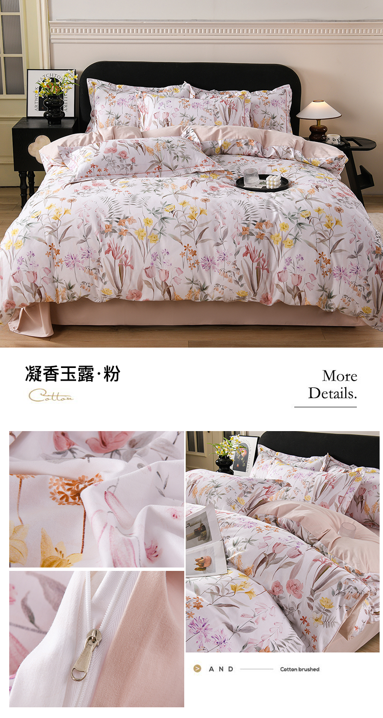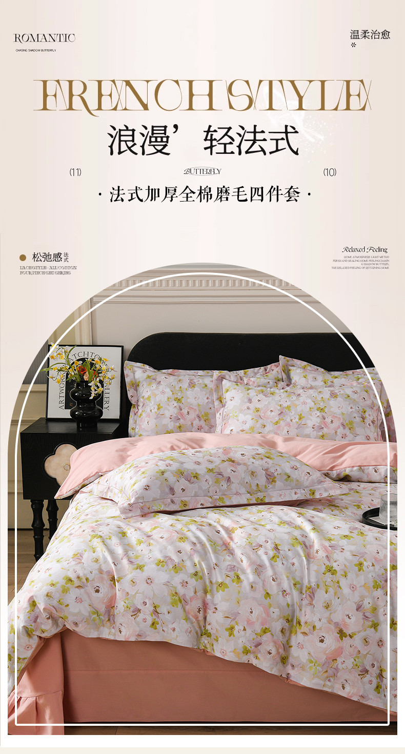当前位置: 91家纺网 > 商品网购 > 床品套件 > 四件套 > 全棉普通四件套 > 金昱纺 2025新款法式加厚全棉纯棉磨毛四件套 木槿花庭-粉