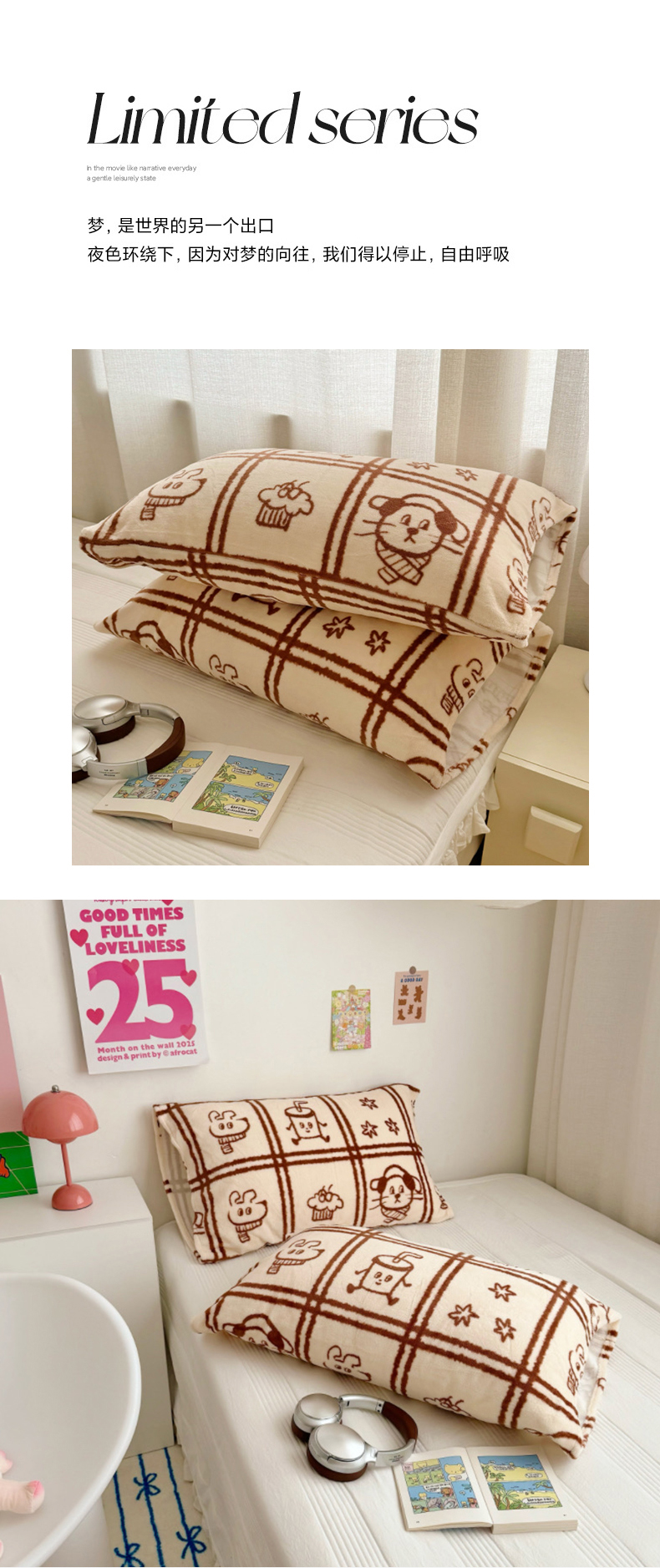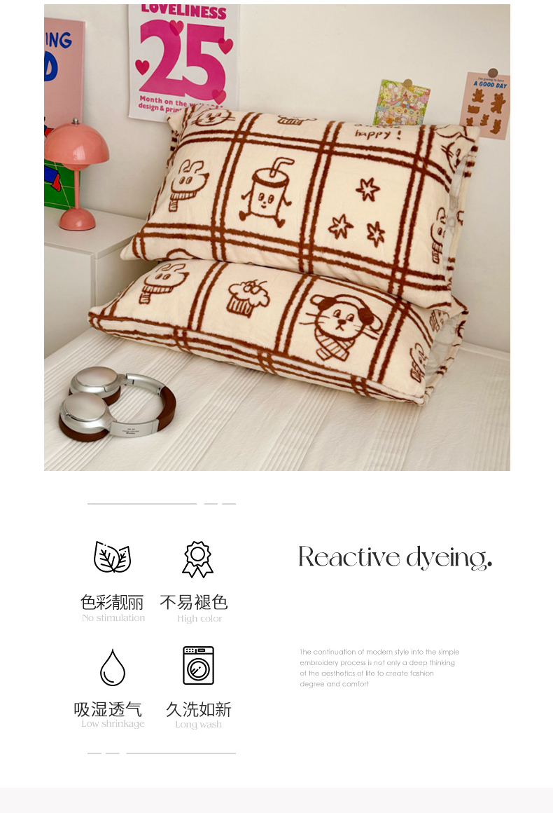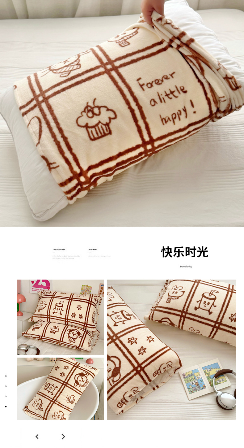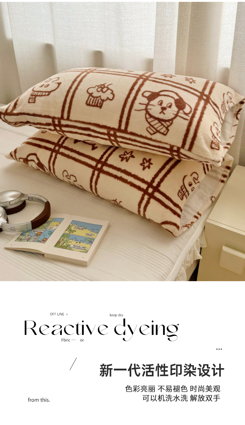 商品名称:禧缘家纺(原梦想家)2025新款牛奶绒纯色印花双开口枕套 快乐时光