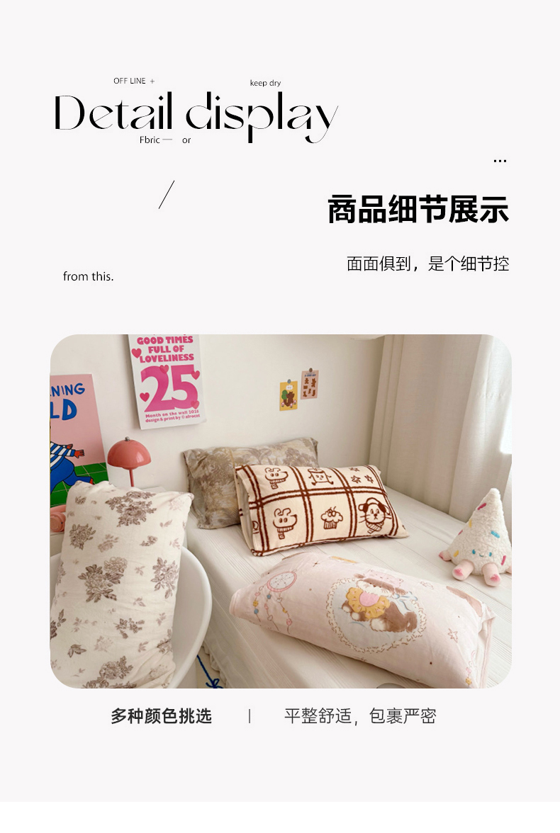 (总)禧缘家纺(原梦想家) 2025新款夹棉双层花边牛奶绒枕套系列,浪漫花开,布布乐园,步步生花,狗狗岛屿,蓝铃风语,落日云舒,猫咪心事,摩卡小镇,雾都茶花,杏花微雨