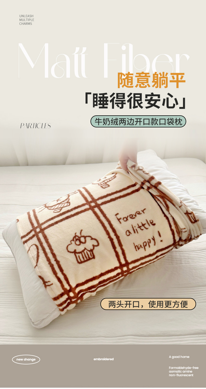 禧缘家纺(原梦想家)2025新款牛奶绒纯色印花双开口枕套 快乐时光