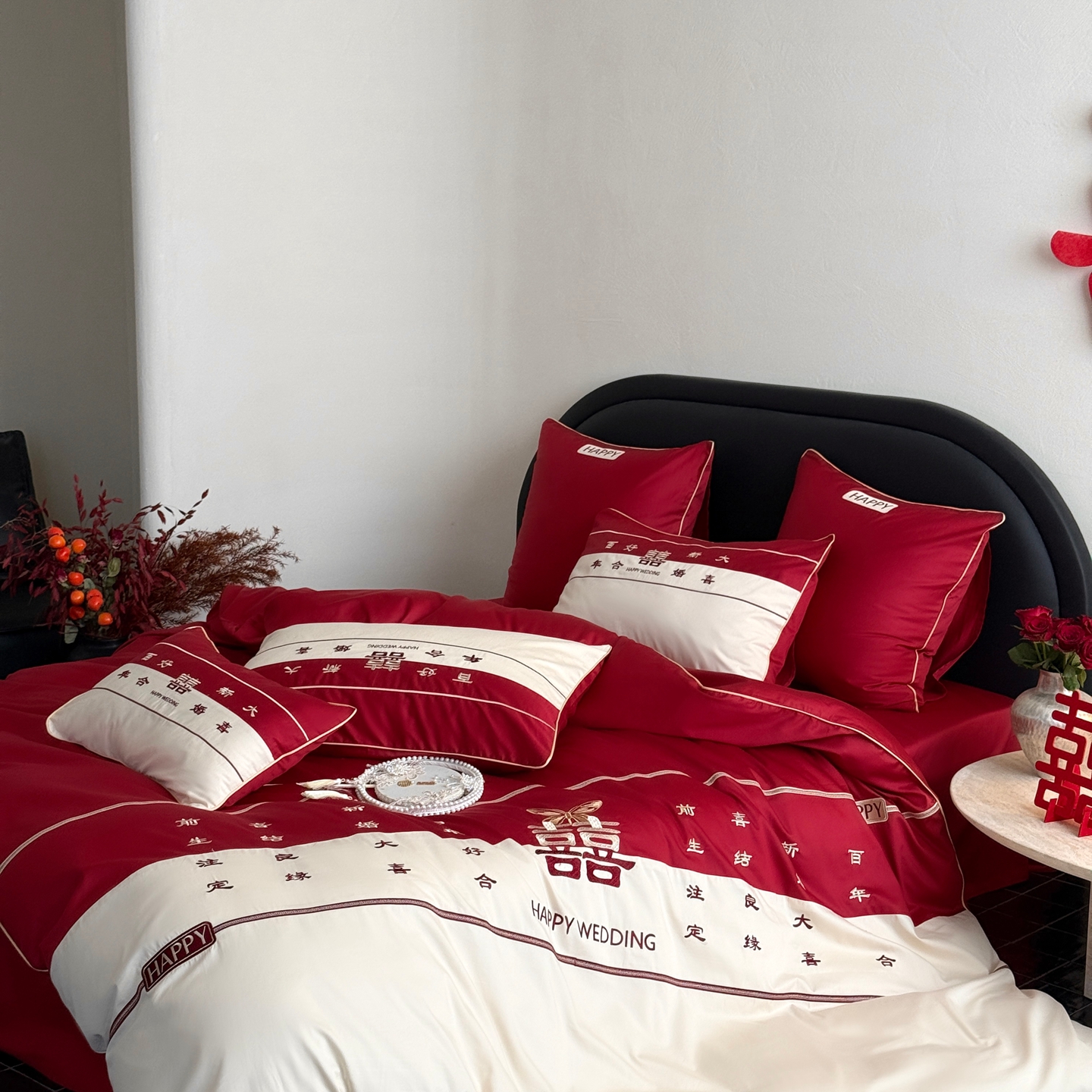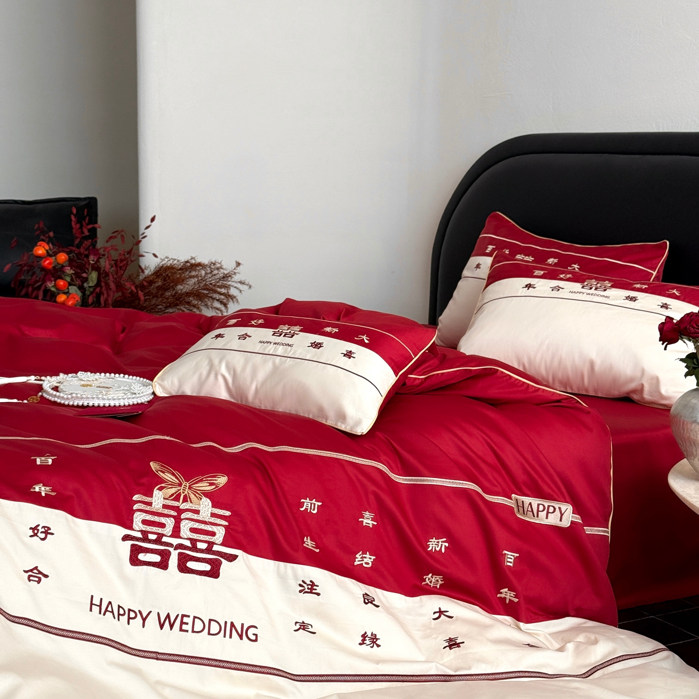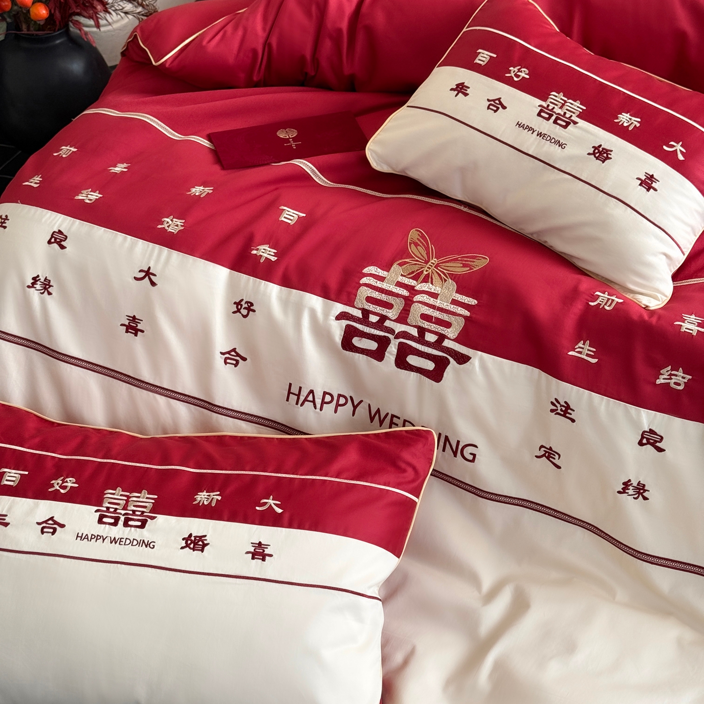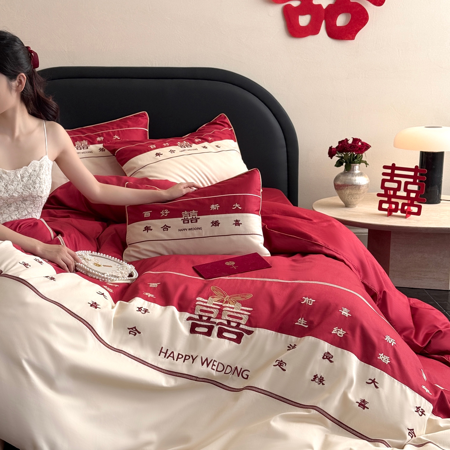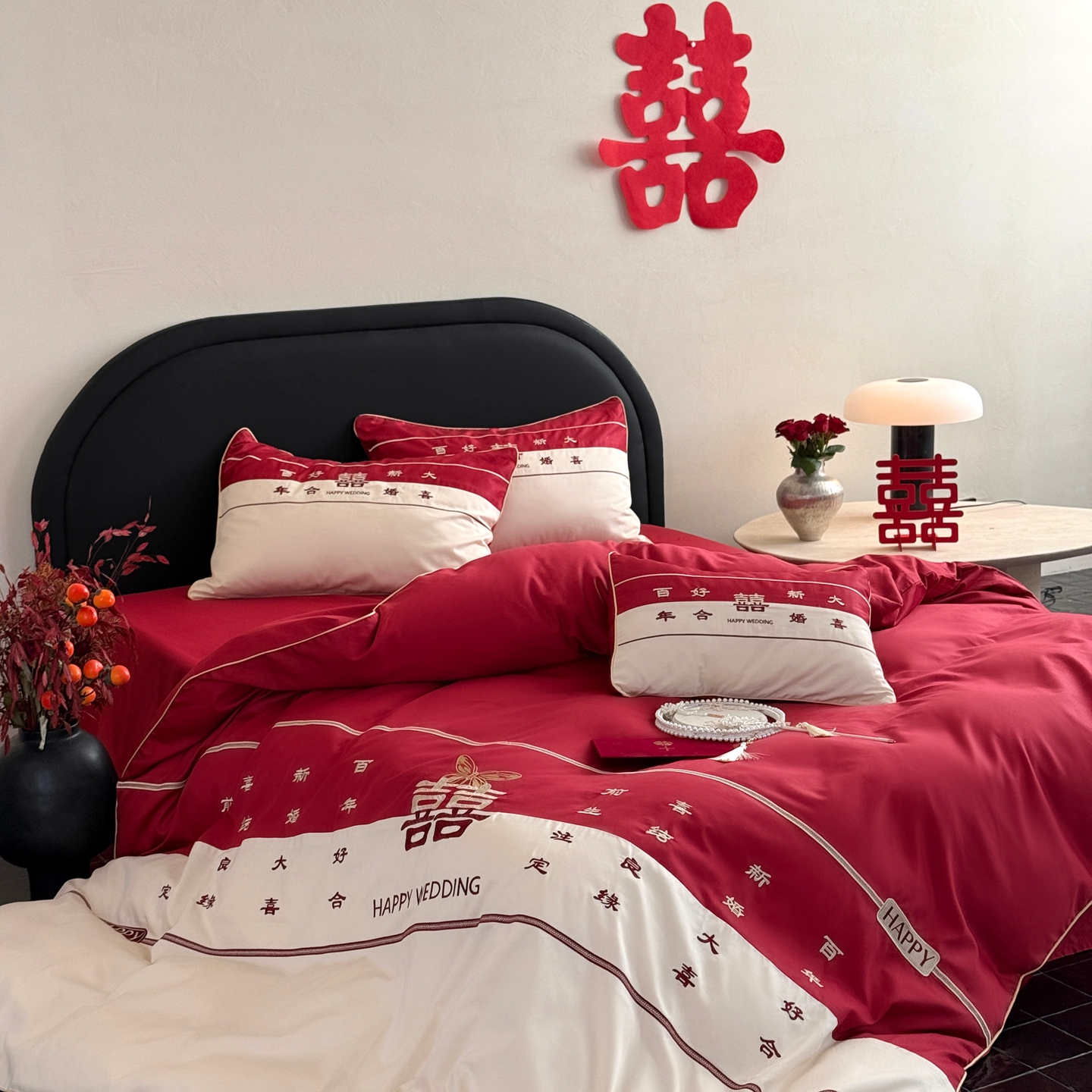 (总)2025新款长绒棉刺绣四件套-新婚快乐