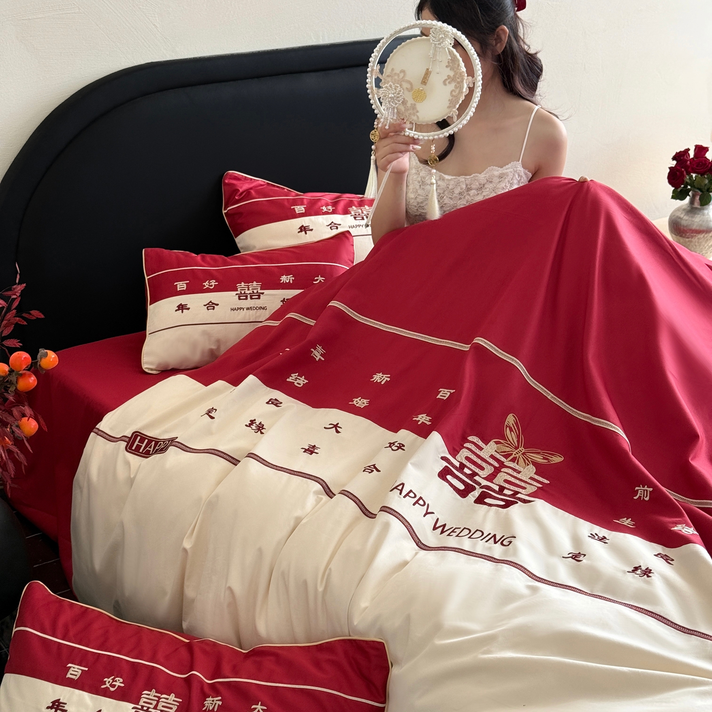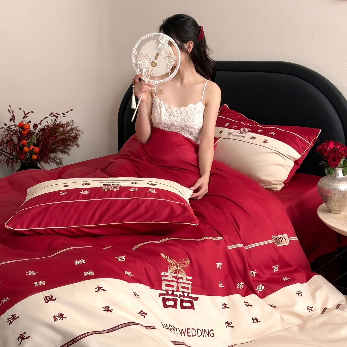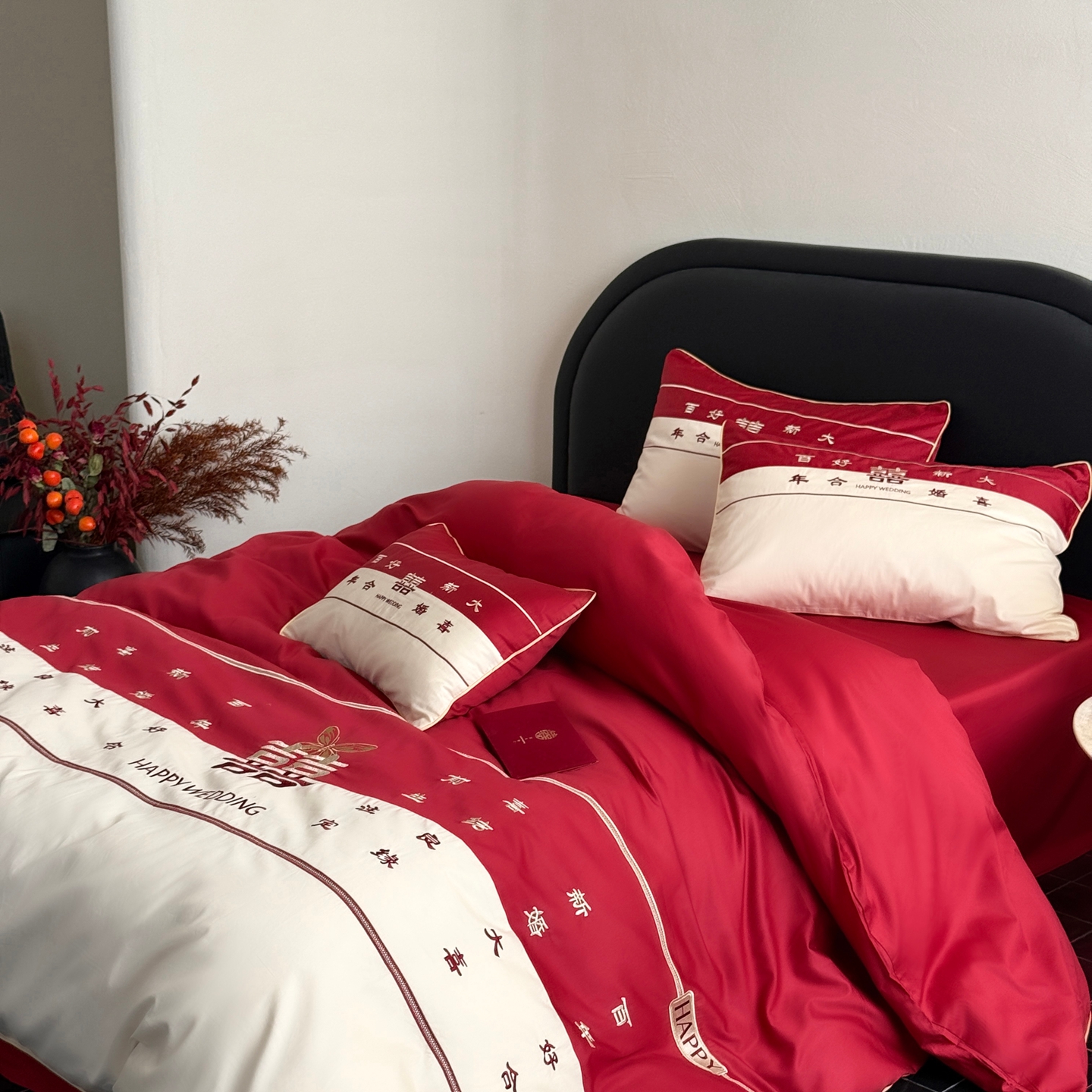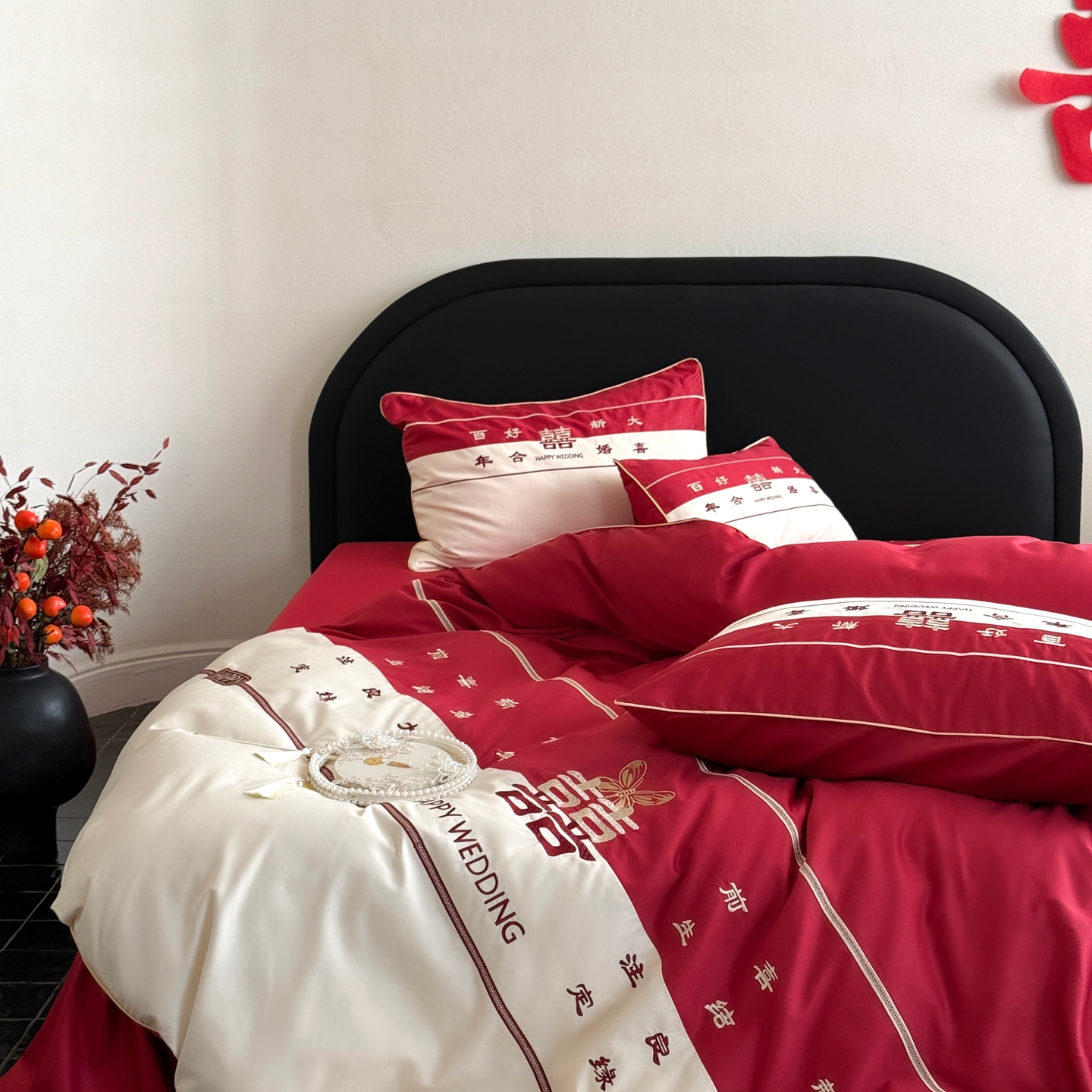 (总)2025新款长绒棉刺绣四件套-新婚快乐