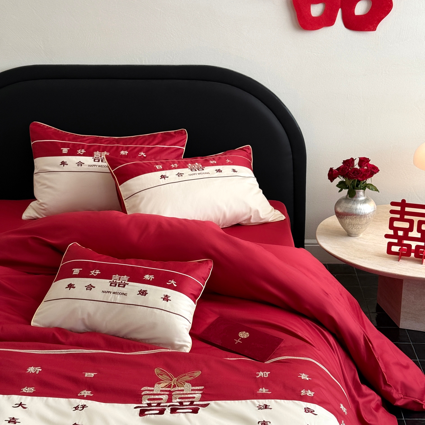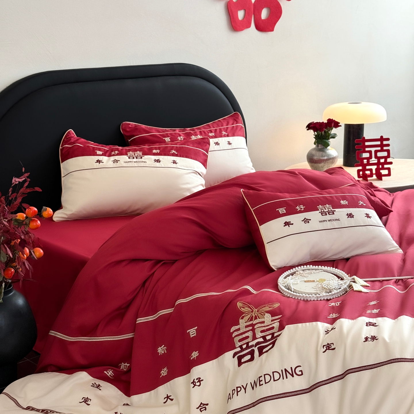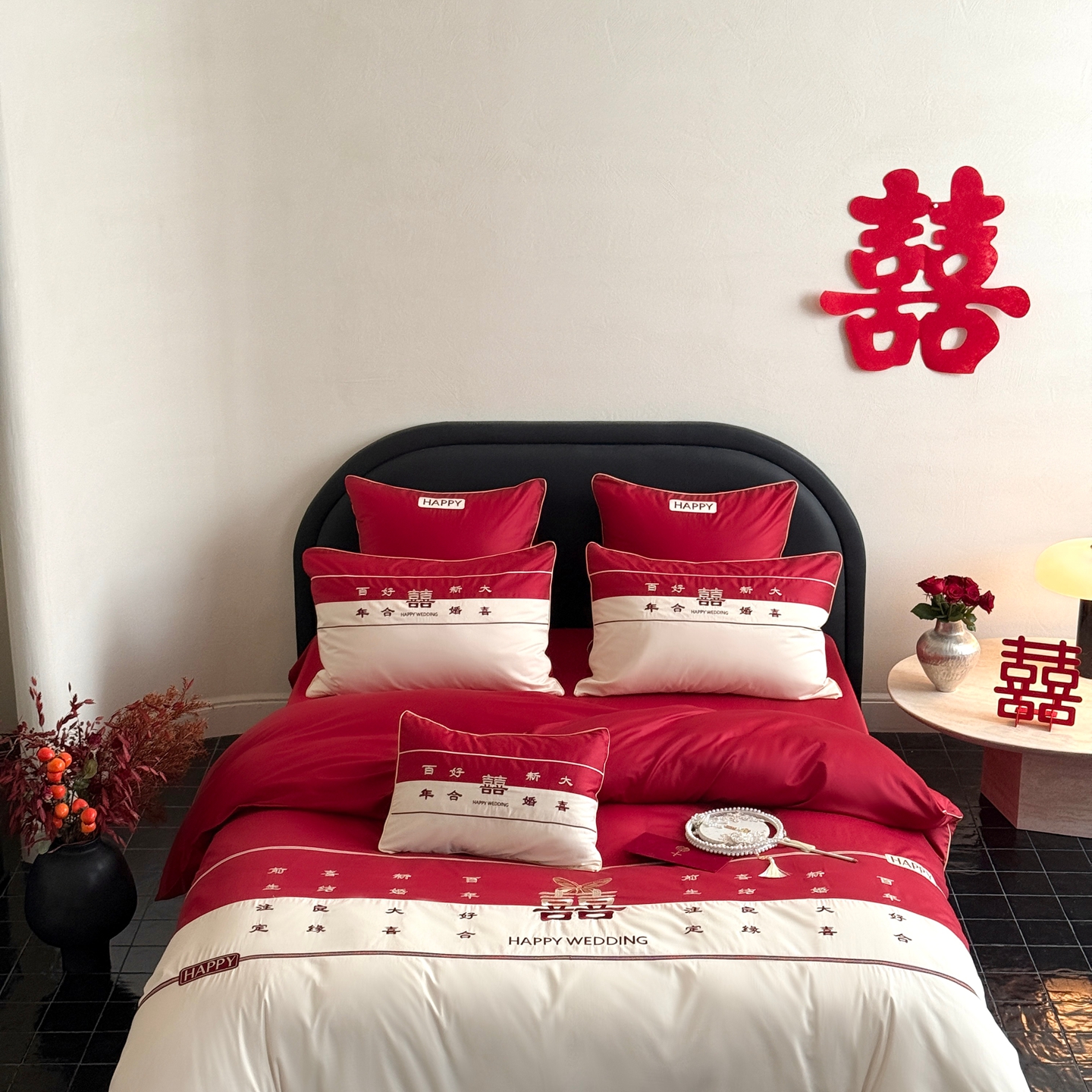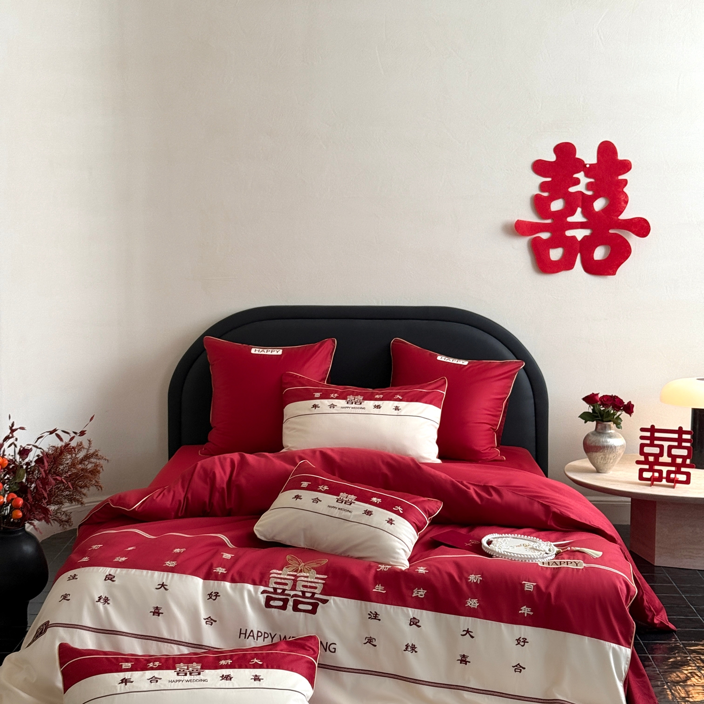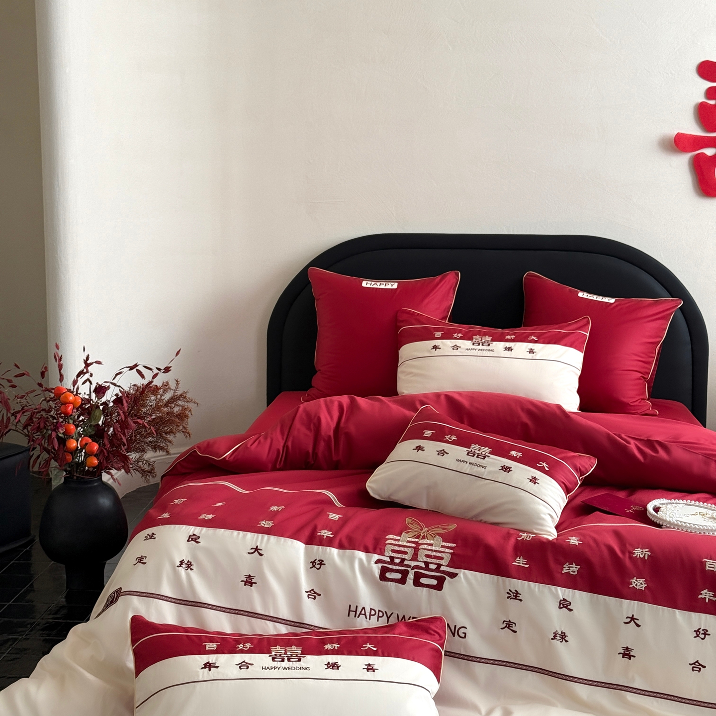 (总)2025新款长绒棉刺绣四件套-新婚快乐
