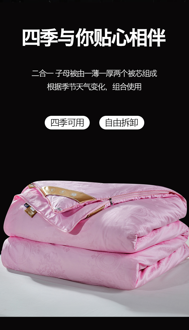 商品名称:群鹿蚕丝羽绒馆 【榨蚕丝填充包过质检】2025新款拉链升级款蚕丝二合一加厚子母被被子被芯 粉