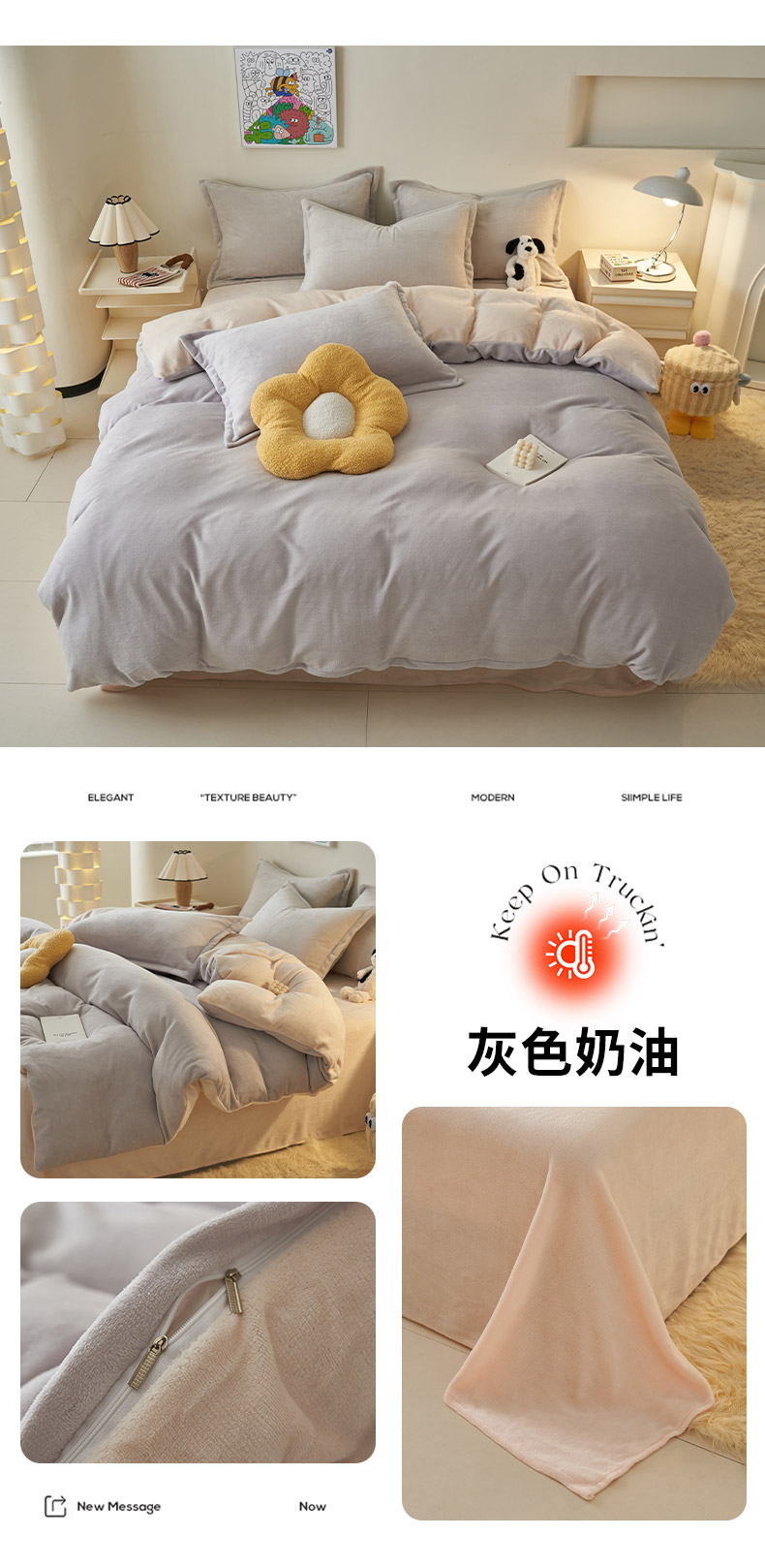 当前位置: 91家纺网 > 商品网购 > 床品套件 > 四件套 > 牛奶绒四件套 > 2025新款多巴胺小红书纯色牛奶绒四件套牛奶绒被套跨境定制-风格二 灰色奶油