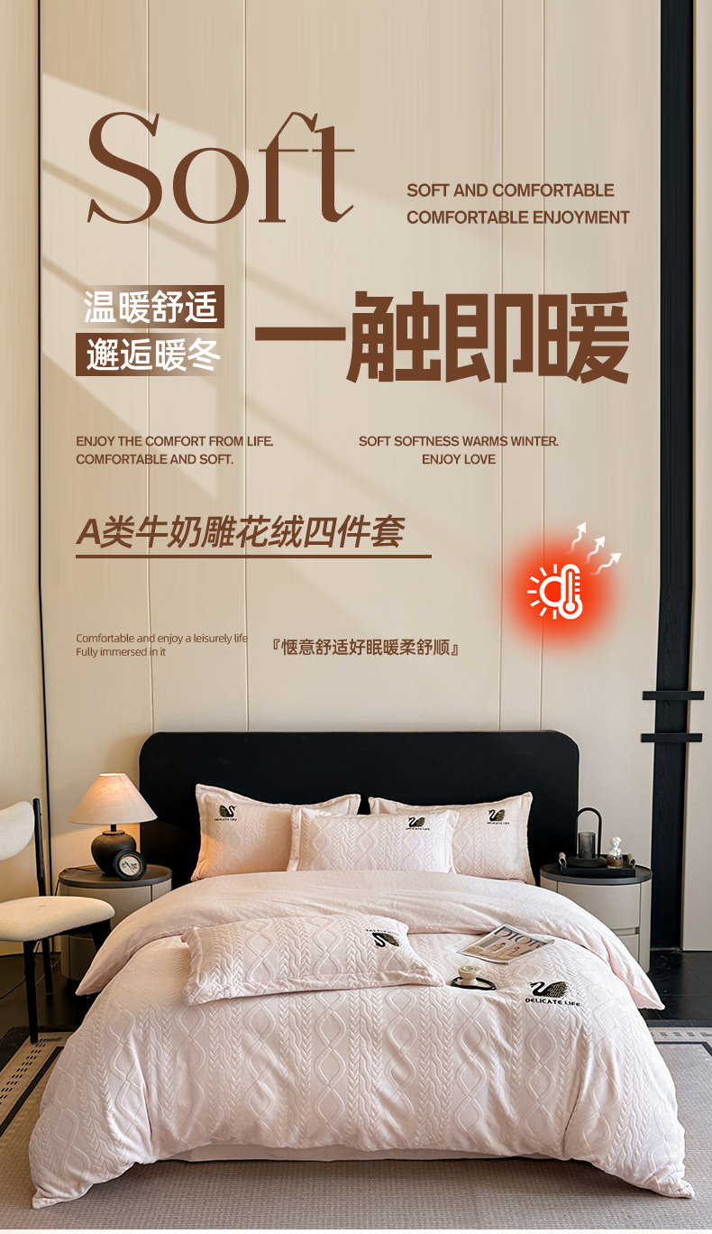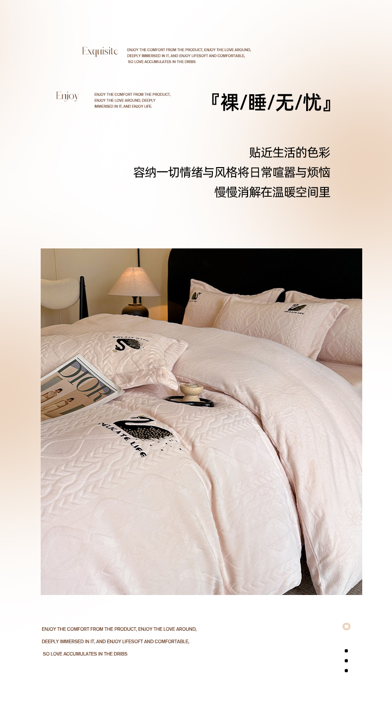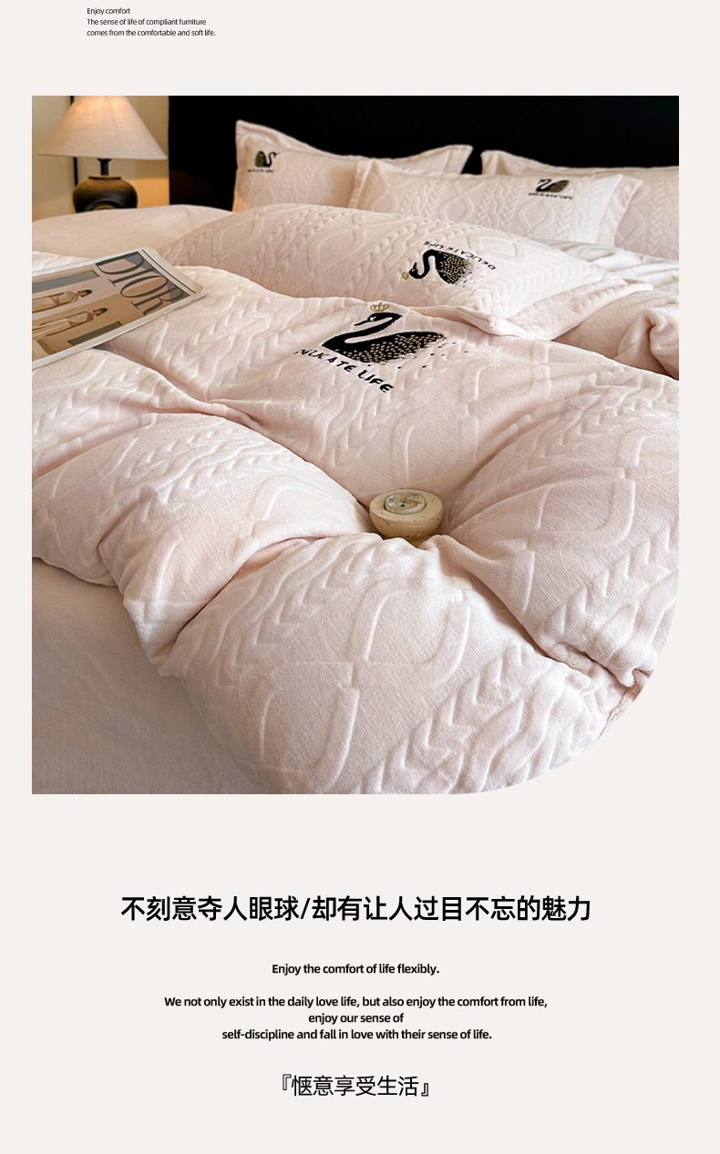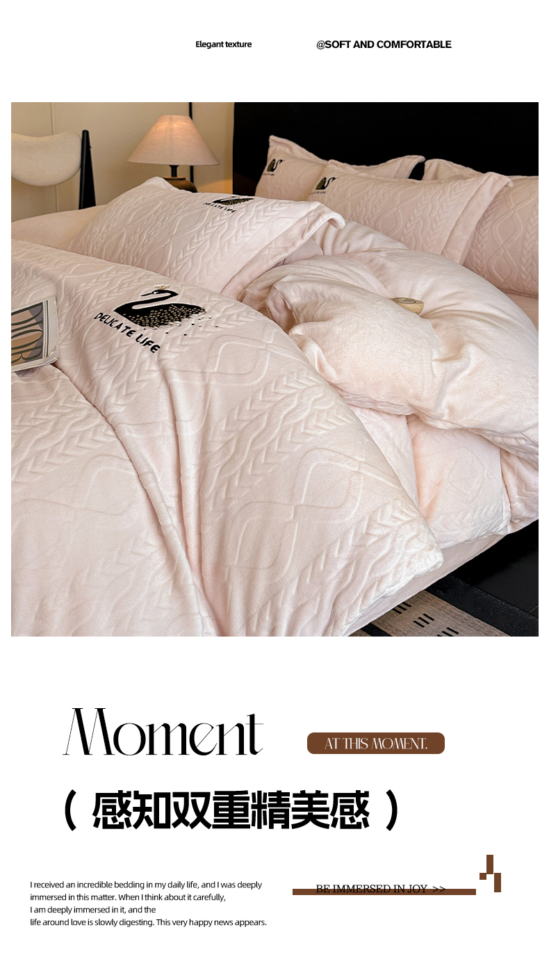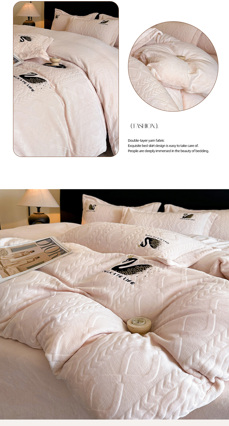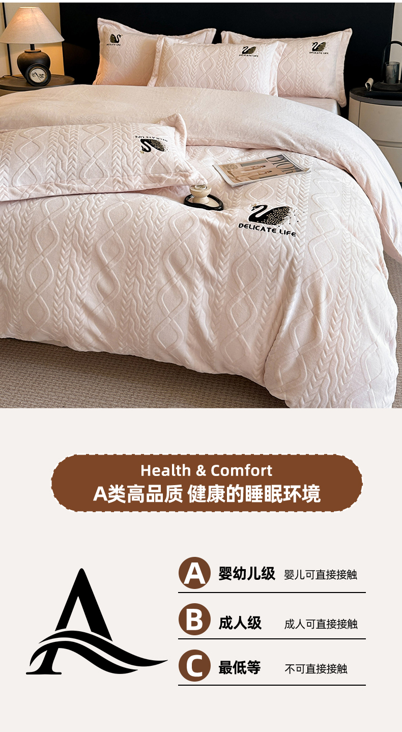 当前位置: 91家纺网 > 商品网购 > 床品套件 > 四件套 > 牛奶绒四件套 > 爱家(原缔乐家纺) 2025新款A类牛奶雕花绒四件套 保罗-黑天鹅系列 黑天鹅-公主玉