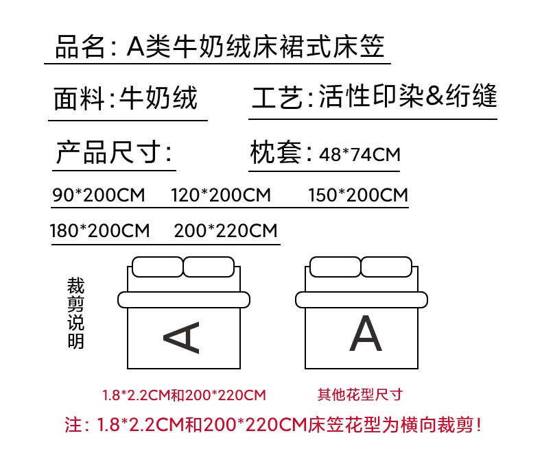 200x220cm(横向花型)床笠+2只枕套