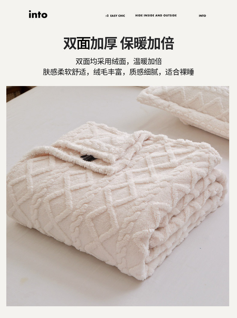 栩裕纺织 2025新款双面塔芙绒毛毯家用毯子卷边款 塔夫绒-米杏色