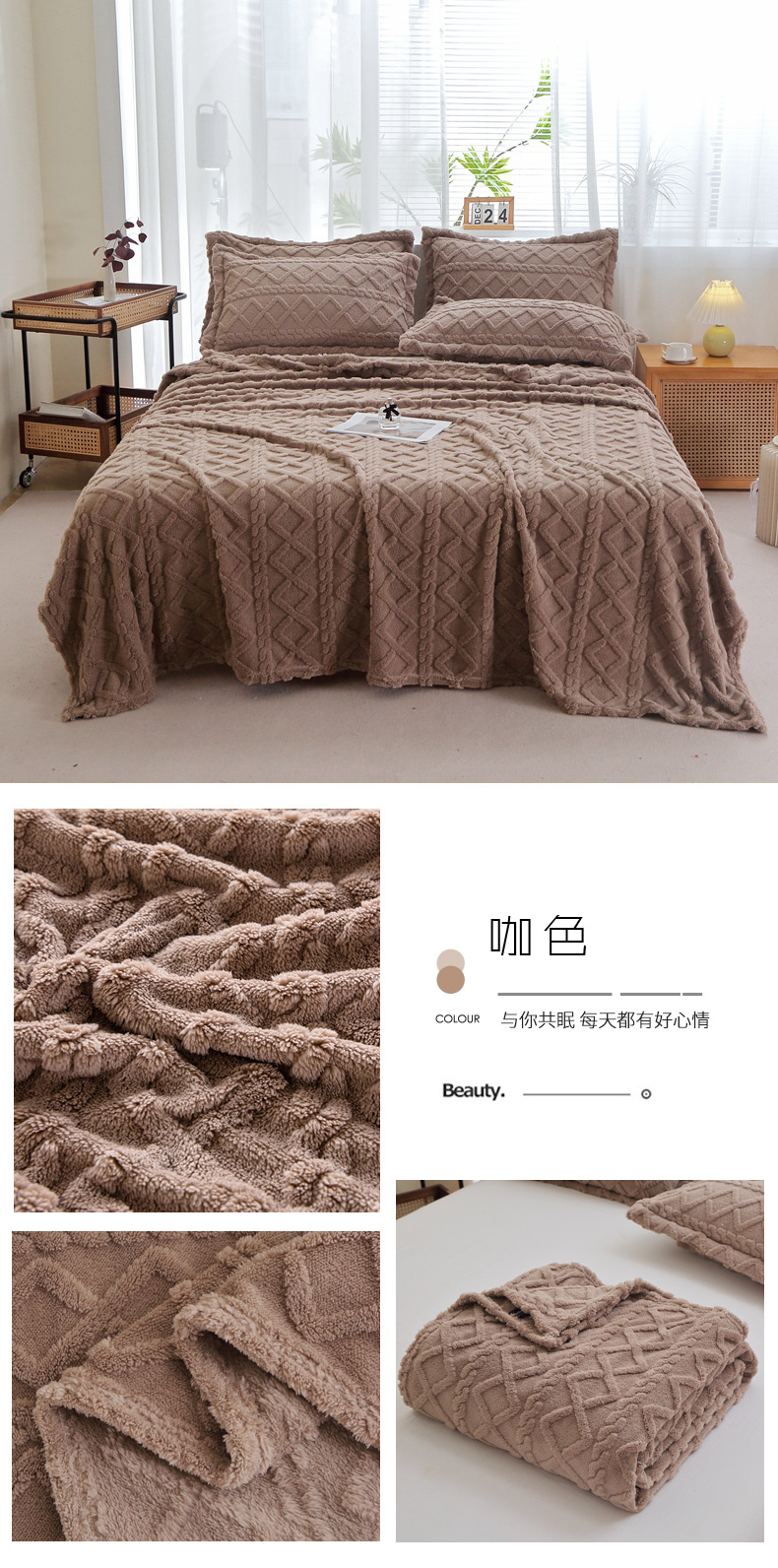 商品名称:栩裕纺织 2025新款双面塔芙绒毛毯家用毯子卷边款 塔夫绒-米杏色