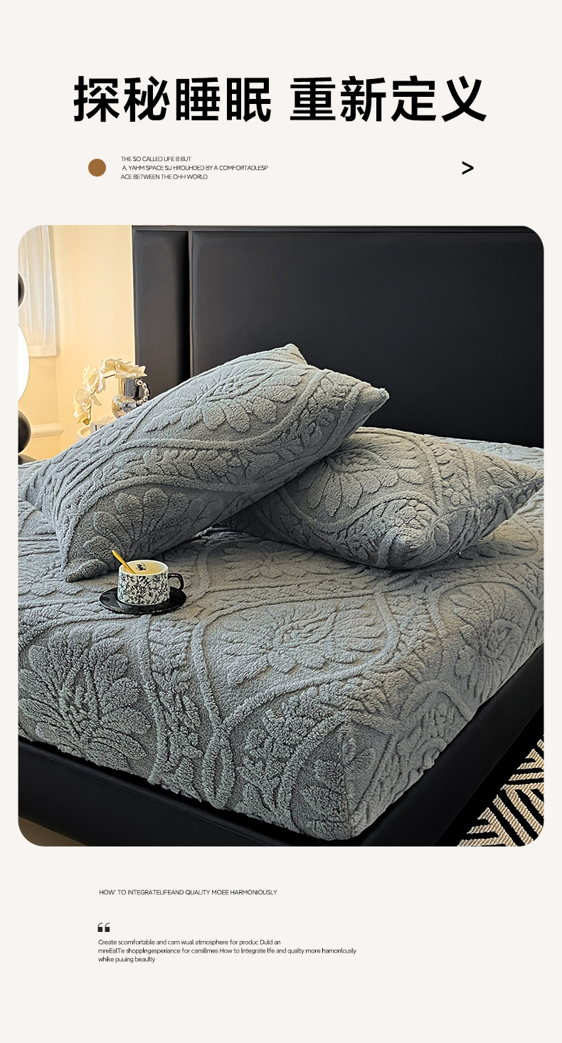 乐家欣 2025新款提花塔芙绒床笠床笠单件单床笠-繁花系列 繁花-深灰