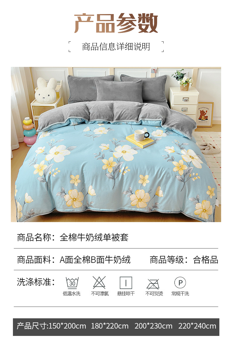 商品名称:琪琪阁家纺 2025秋冬新款全棉加牛奶绒单被套棉加绒被套雅韵花香