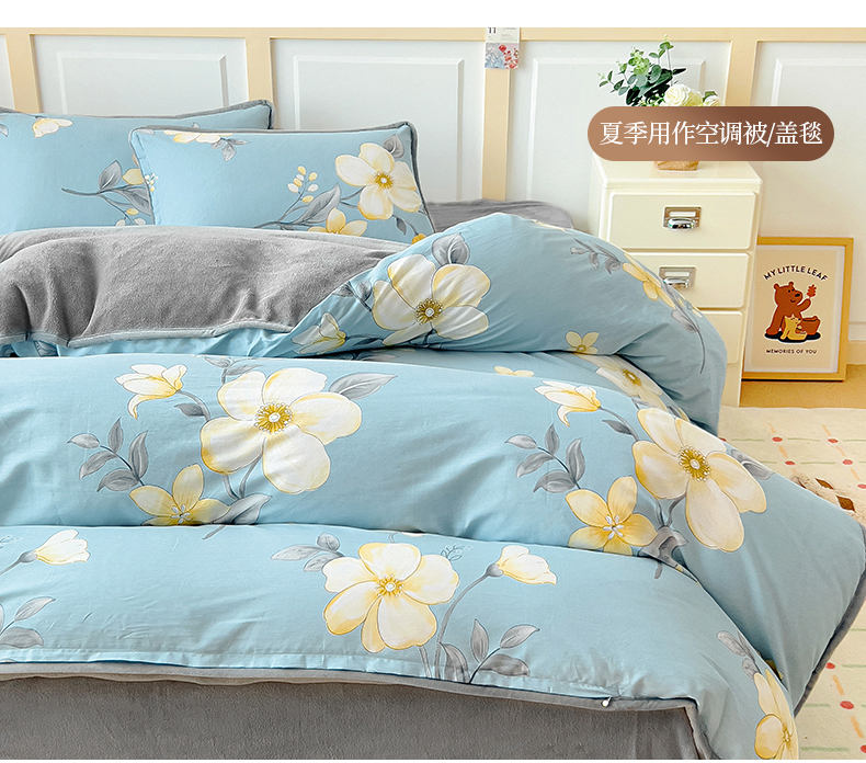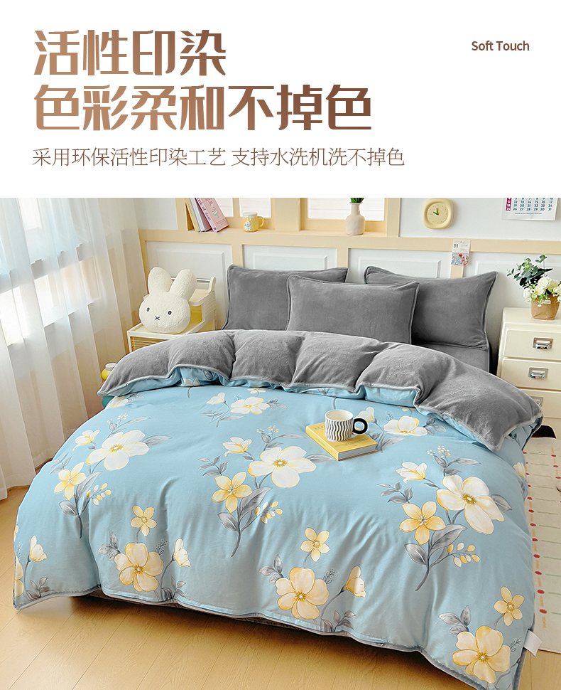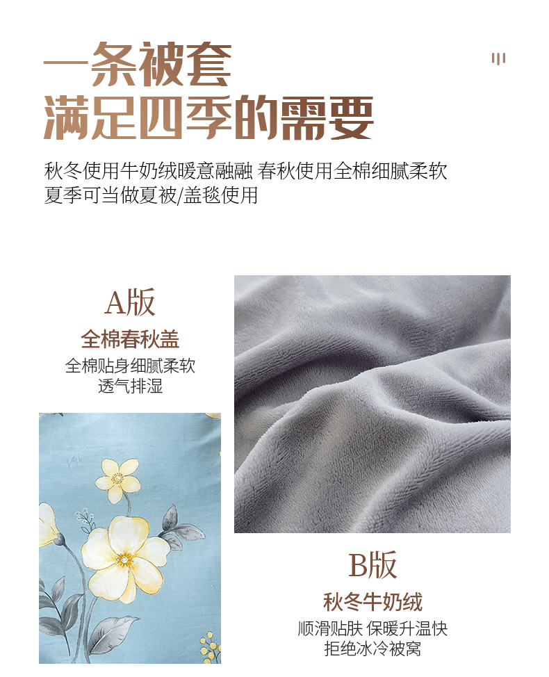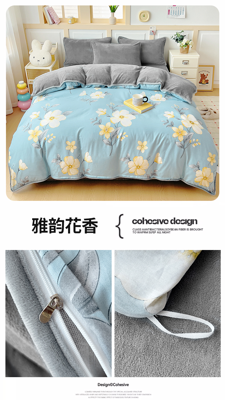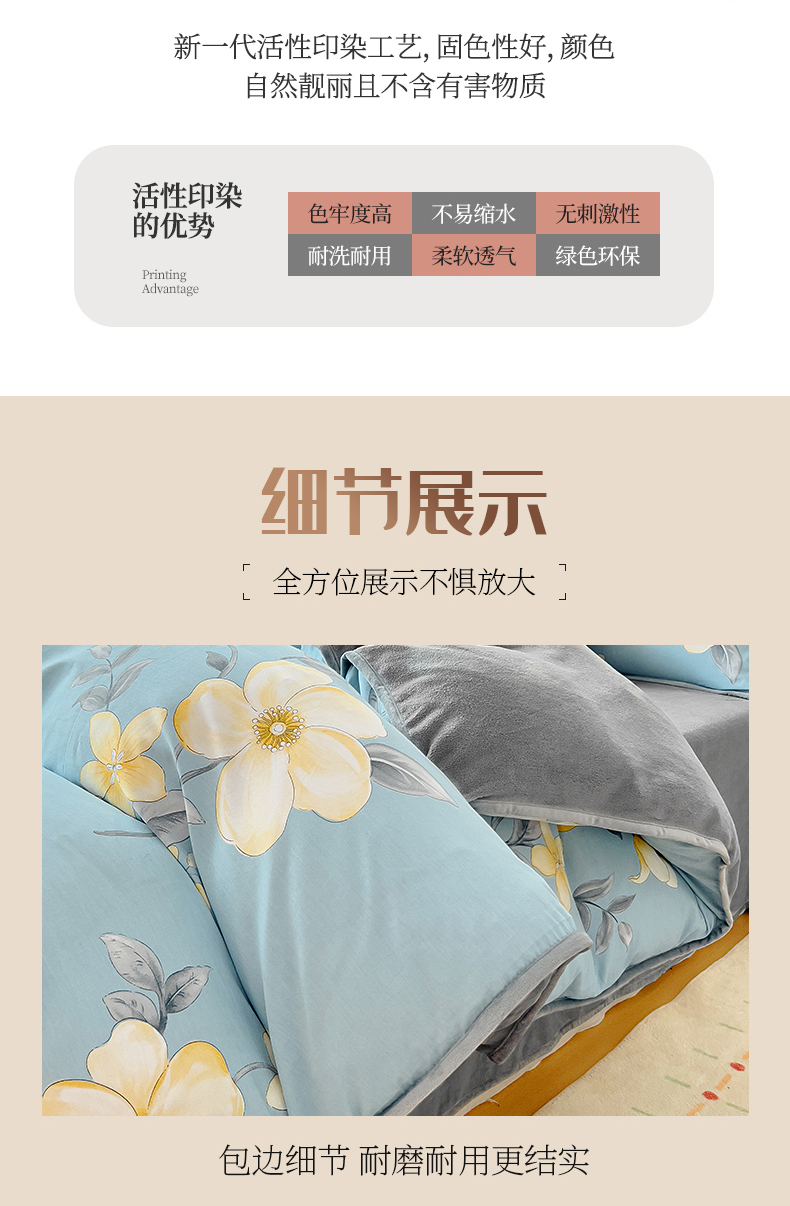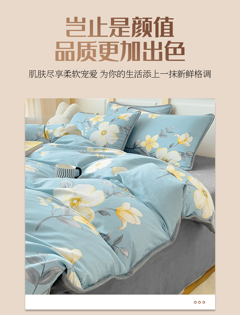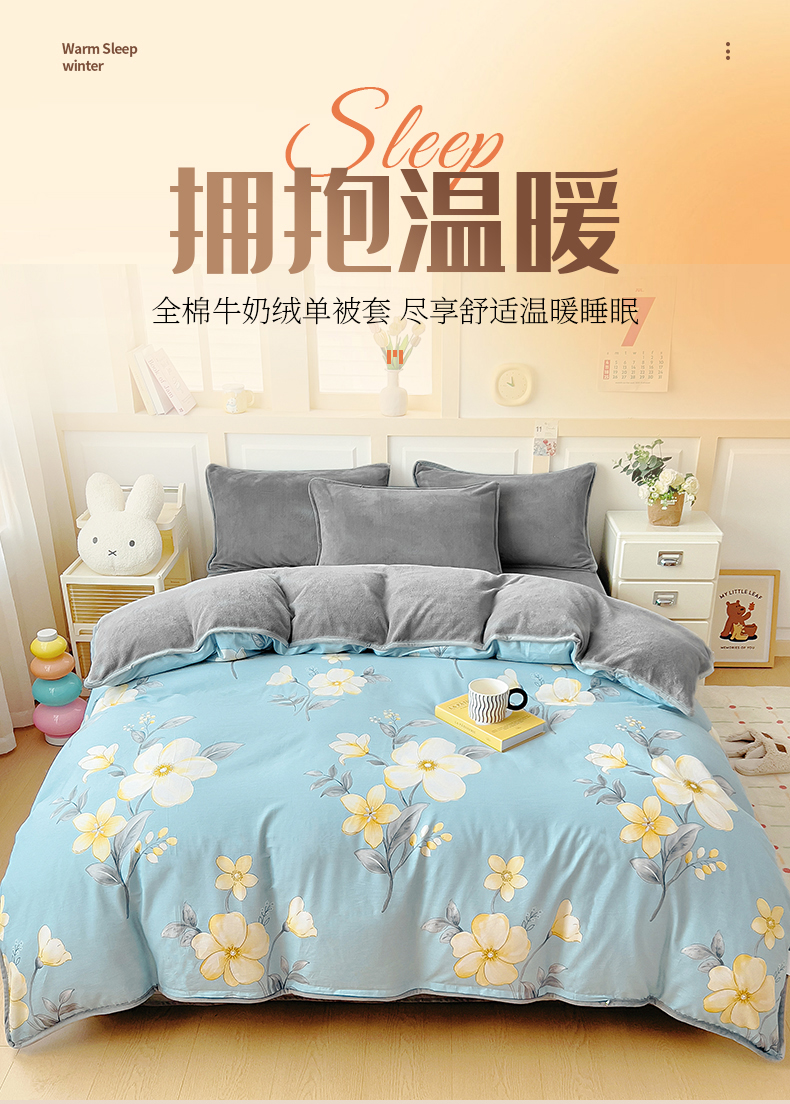 琪琪阁 2023新款A棉B绒棉加绒牛奶绒四件套单被套 宁静生活,宁静生活