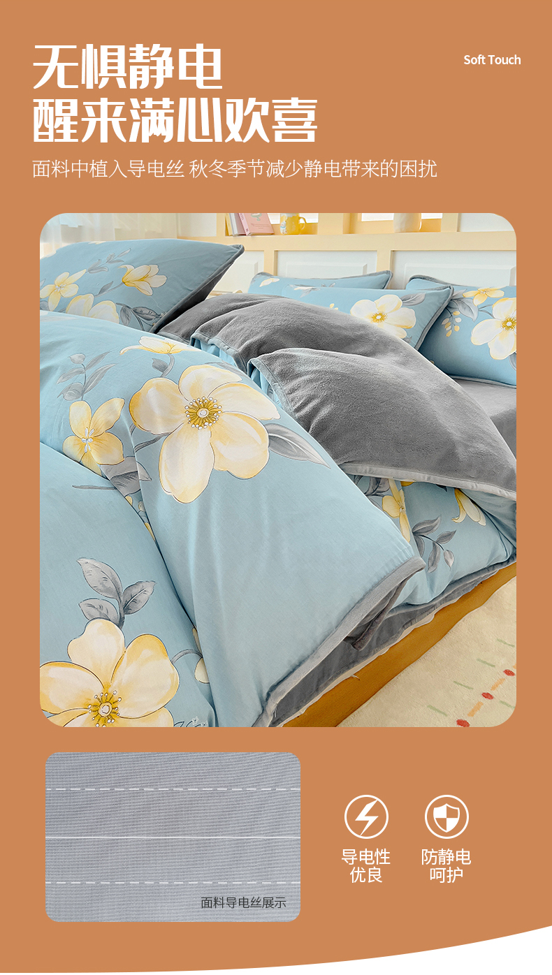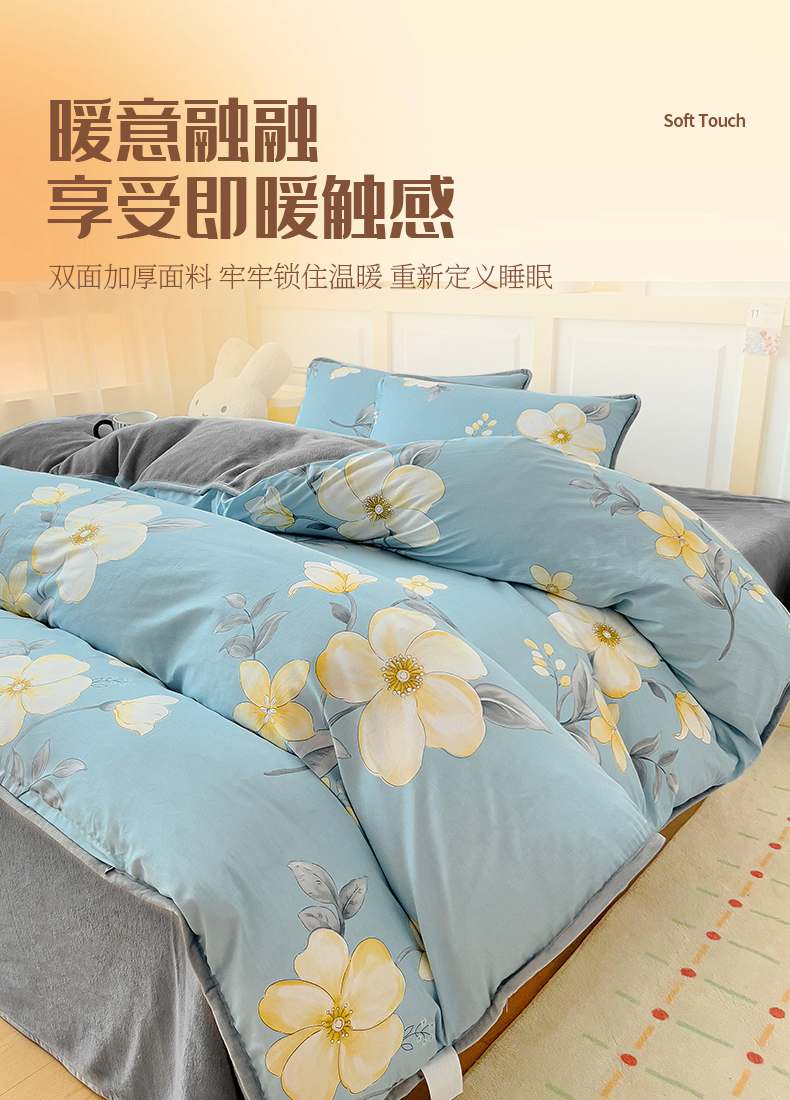 琪琪阁 2023新款A棉B绒棉加绒牛奶绒四件套单被套 向阳花开,向阳花开
