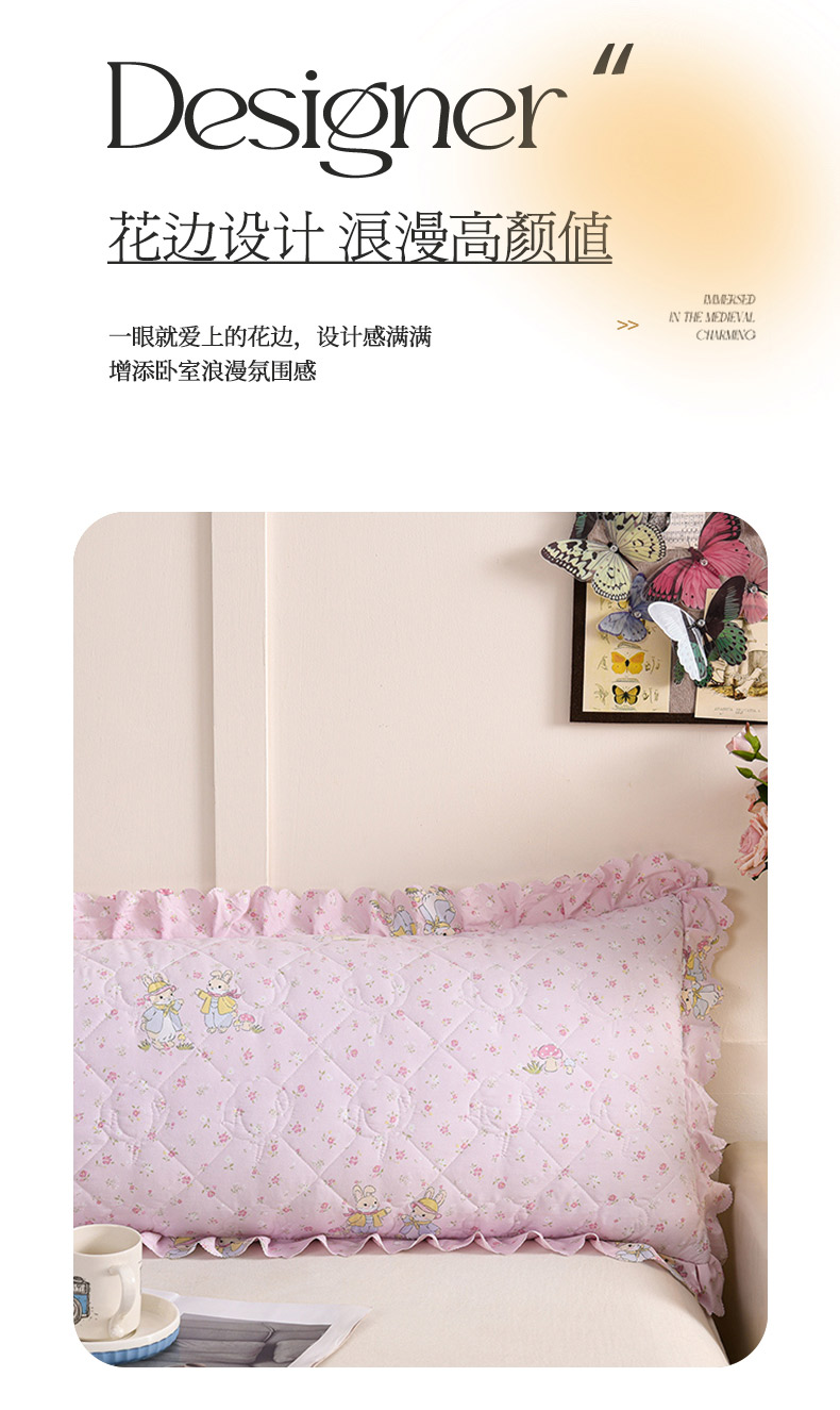 商品名称:艾兜坊 2025新款小碎花水洗棉双人枕套 小花兔