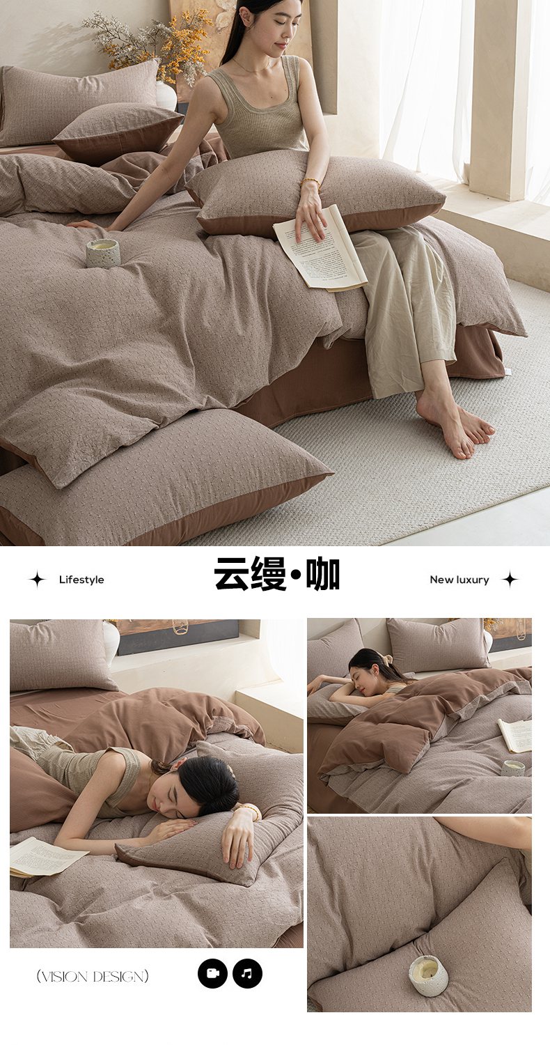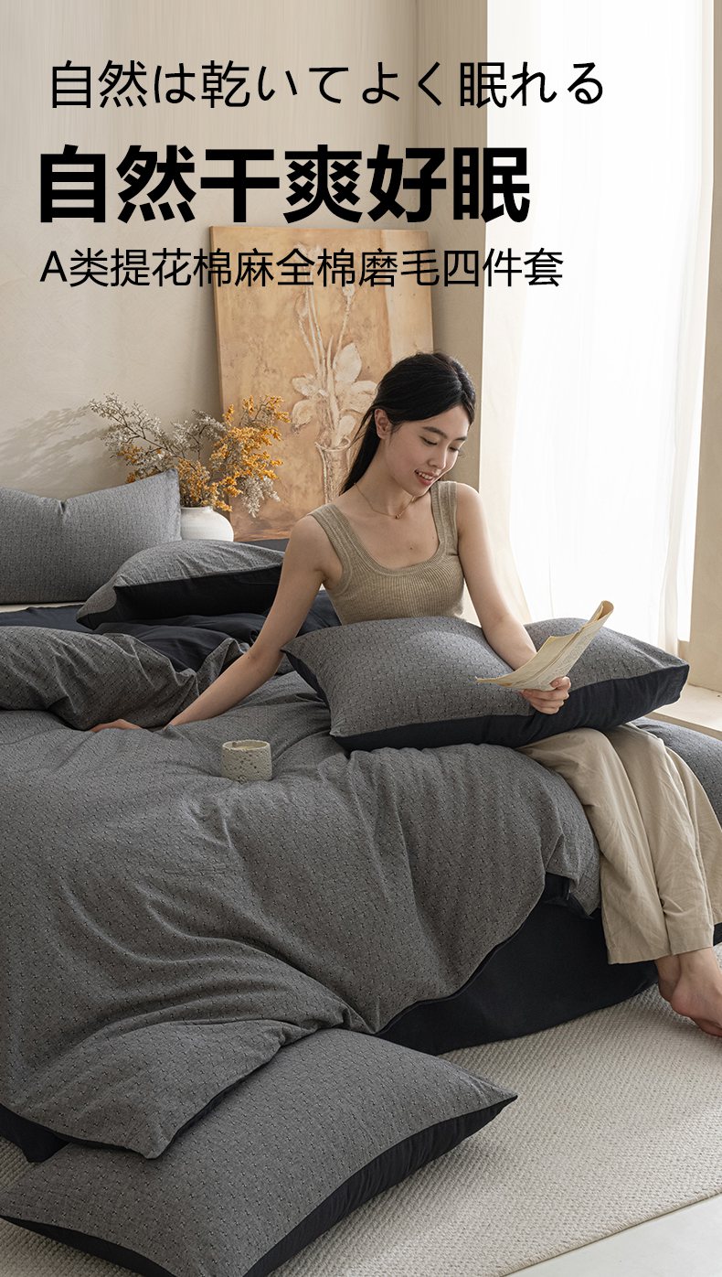 当前位置: 91家纺网 > 商品网购 > 床品套件 > 四件套 > 普通磨毛四件套 > 典曼家纺 2025秋冬新品棉麻提花磨毛四件套-云缦系列 云缦-灰