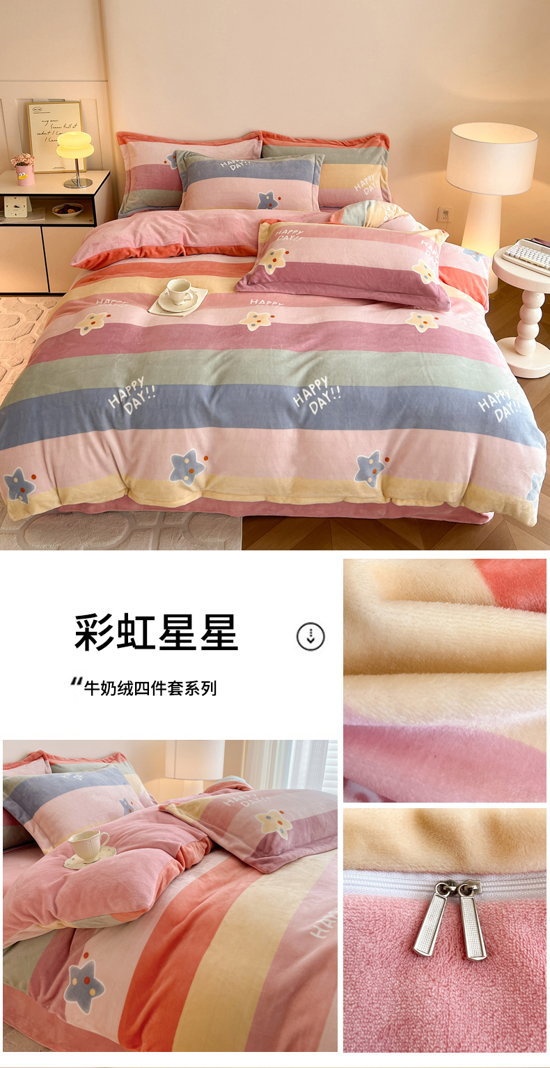 当前位置: 91家纺网 > 商品网购 > 床品套件 > 四件套 > 牛奶绒四件套 > 富馨莱 2025新款牛奶绒印花四件套240克面料支持一件定制尺寸 彩虹熊