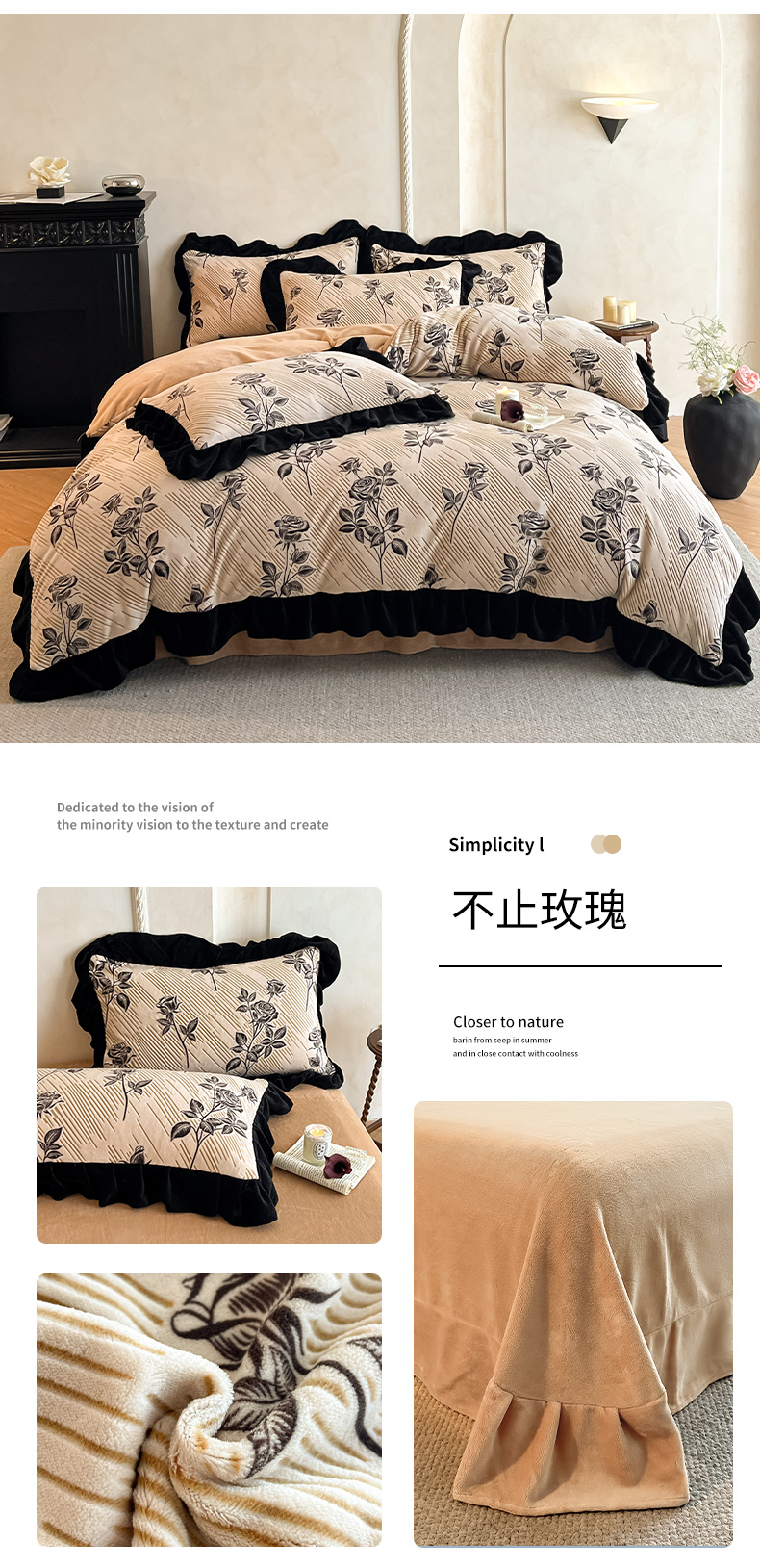 商品名称:佳品居 2025新款法式复古雕花绒四件套 不止玫瑰