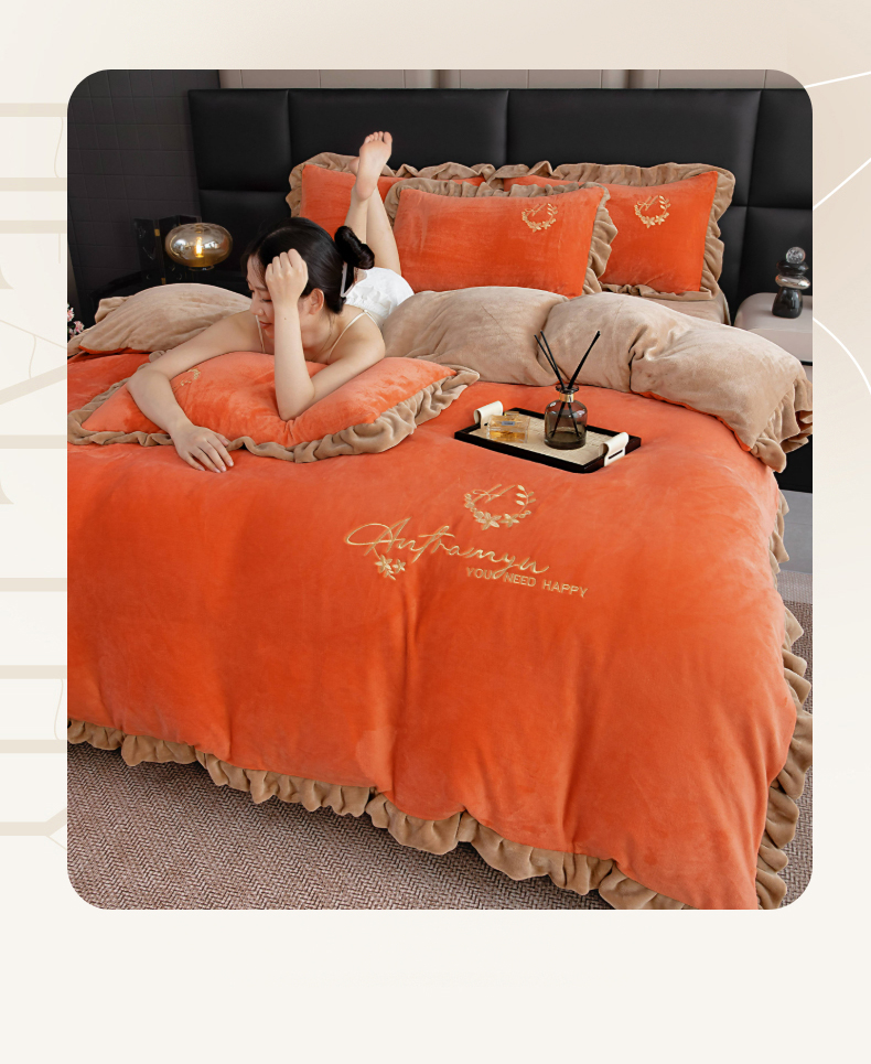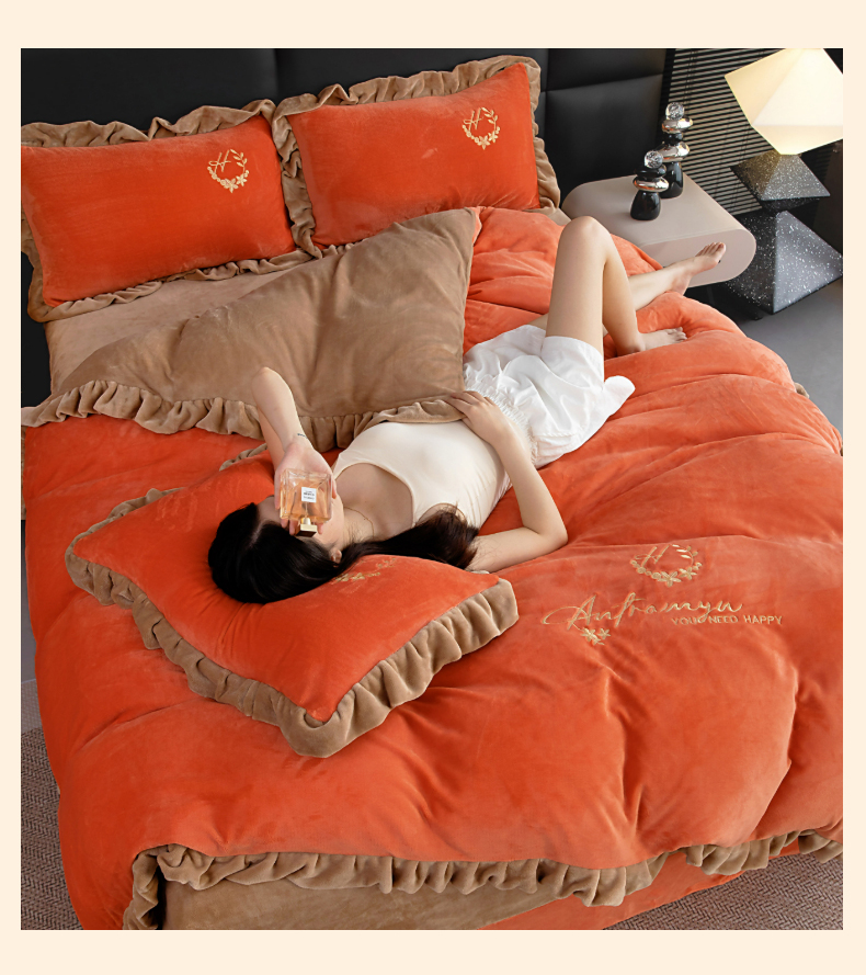 (总)找底底 2023新款牛奶绒花边床裙刺绣四件套,爱玛橙,草莓粉,高级灰,牛油果绿,青草绿,柔情紫,天空蓝,薰衣草紫