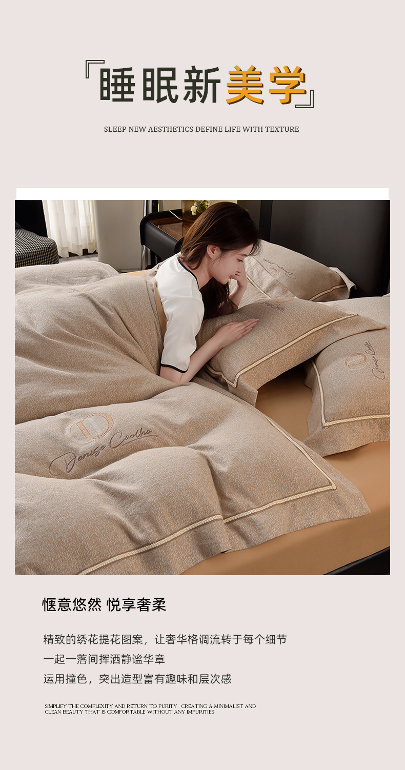 当前位置: 91家纺网 > 商品网购 > 床品套件 > 四件套 > 长绒棉四件套 > 瑞驰家纺 2025新款长绒棉纯棉色织提花绣花磨毛四件套-克里斯汀 克里斯汀-香槟金