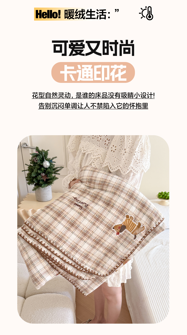 商品名称:澳萝拉 2025新款230g高克重全工艺牛奶绒三角针毛毯四季毯休闲毯毯子(稳定供货 不缺货) 格纹腊肠狗