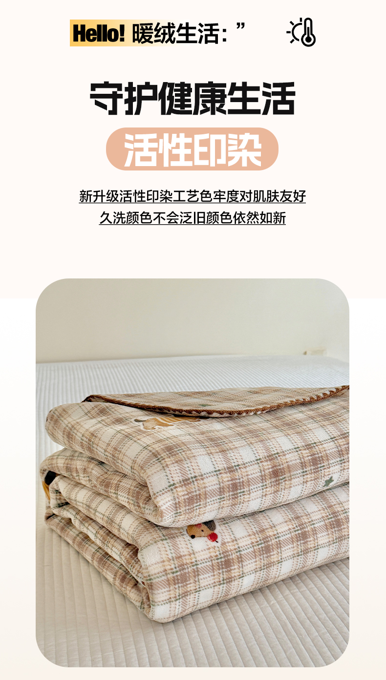 澳萝拉 2025新款230g高克重全工艺牛奶绒三角针毛毯四季毯休闲毯毯子(稳定供货 不缺货) 格纹腊肠狗