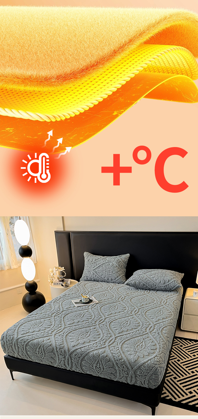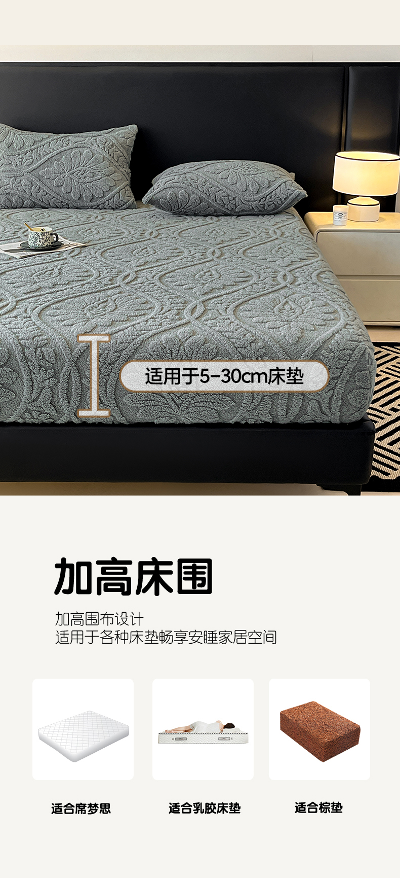 (总)欧邦 2025新款提花暖阳绒单床笠,苍穹蓝,初雪白,海棠粉,慕斯灰,青瓷绿,檀木咖