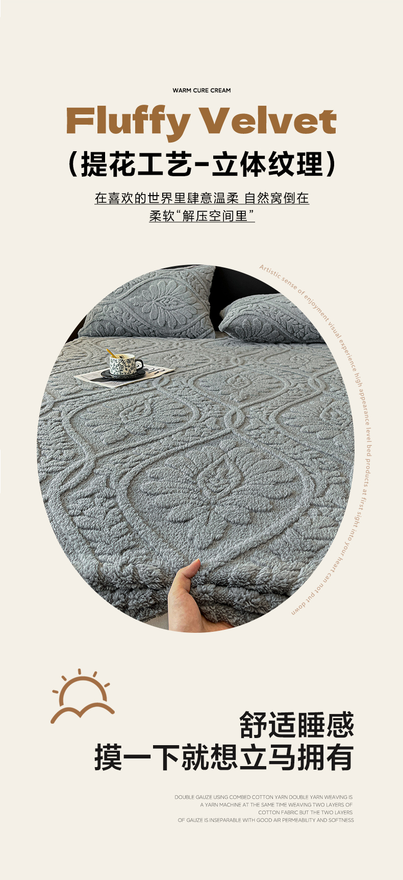 • 91家纺网 家纺一手货源 找家纺 (总)欧邦 2025新款提花暖阳绒单床笠,苍穹蓝,初雪白,海棠粉,慕斯灰,青瓷绿,檀木咖