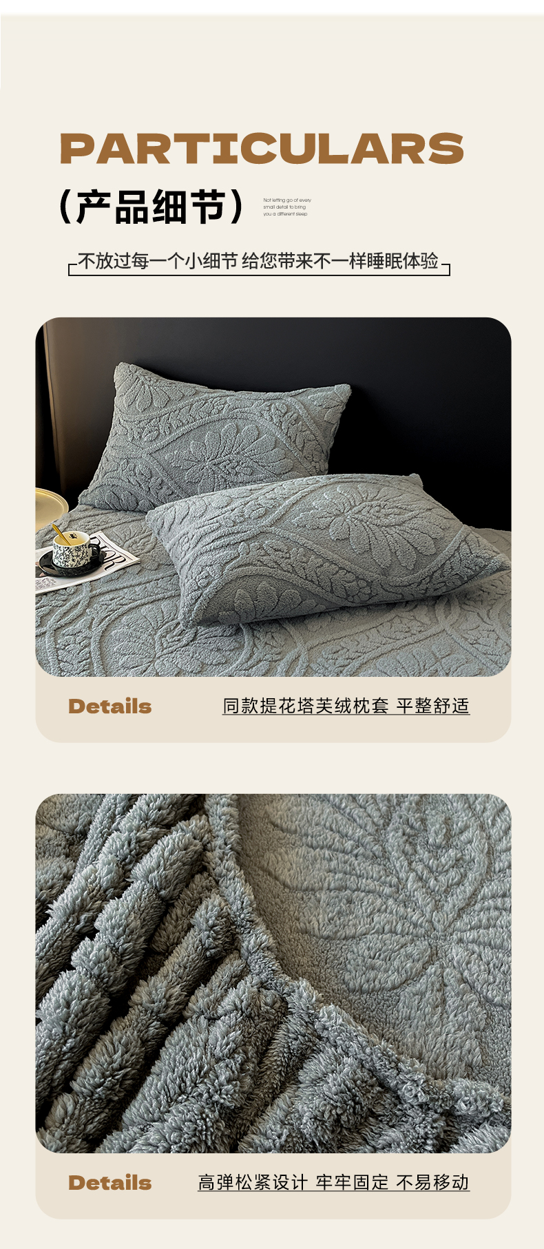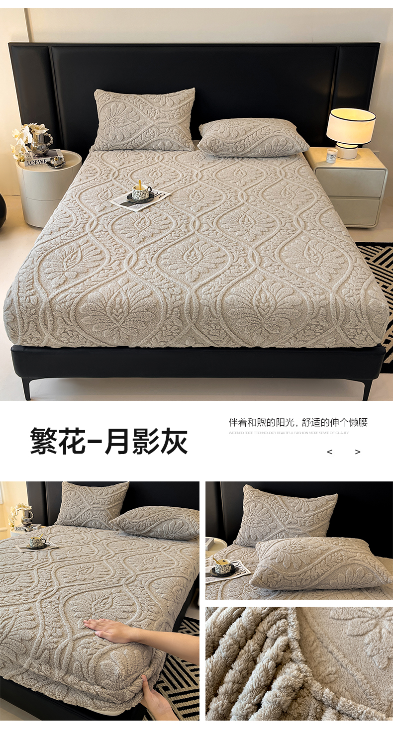 欧邦 2025新款提花塔芙绒床笠单床笠床笠单件-繁花 繁花-深灰