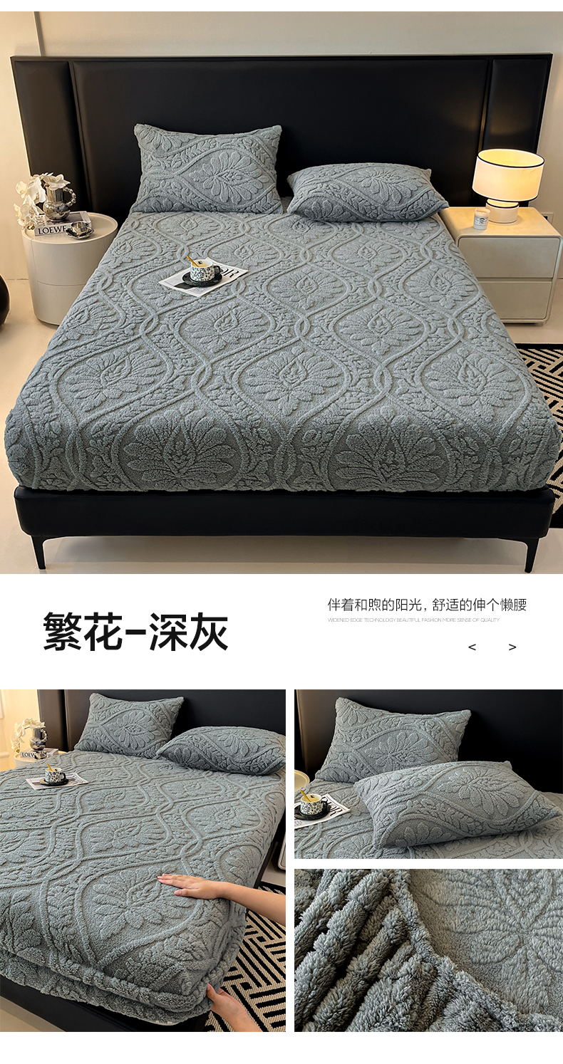 • 91家纺网 家纺一手货源 找家纺 欧邦 2025新款提花塔芙绒床笠单床笠床笠单件-繁花 繁花-深灰