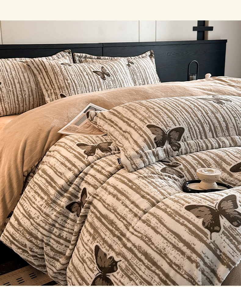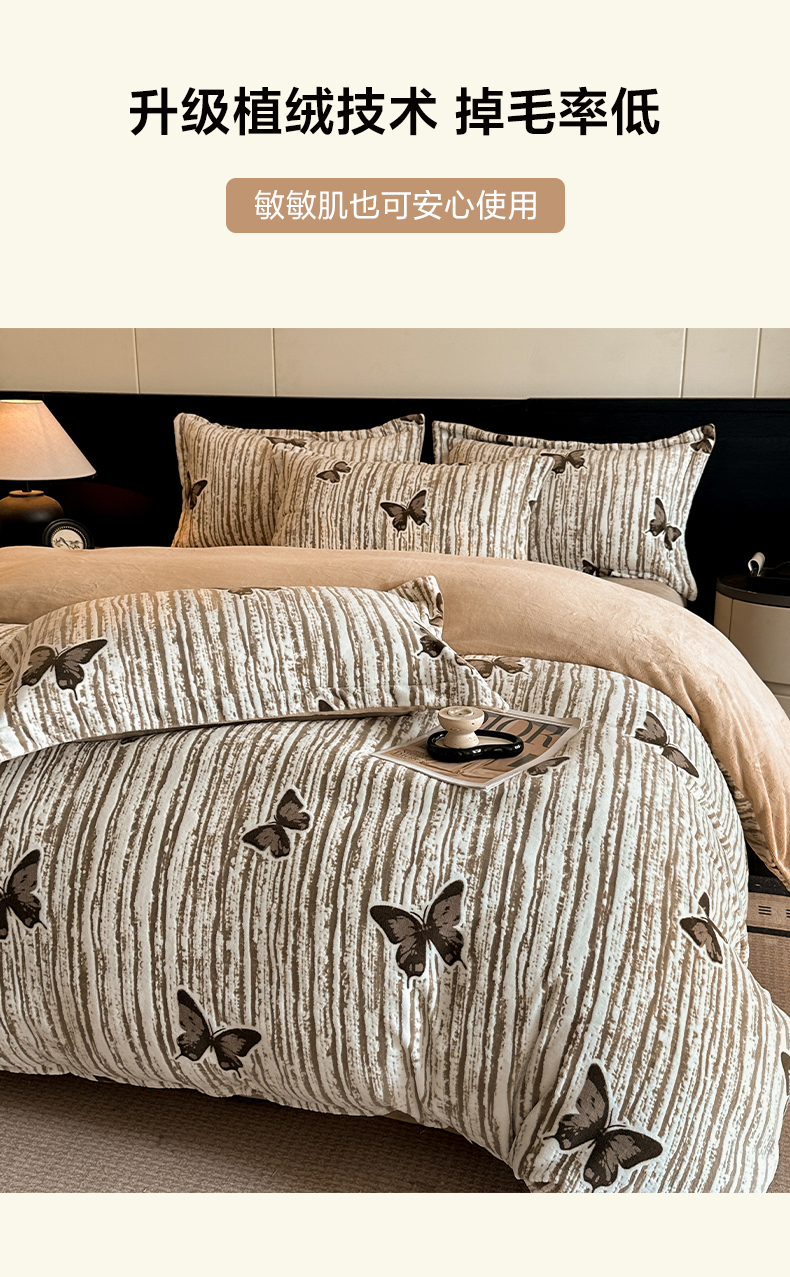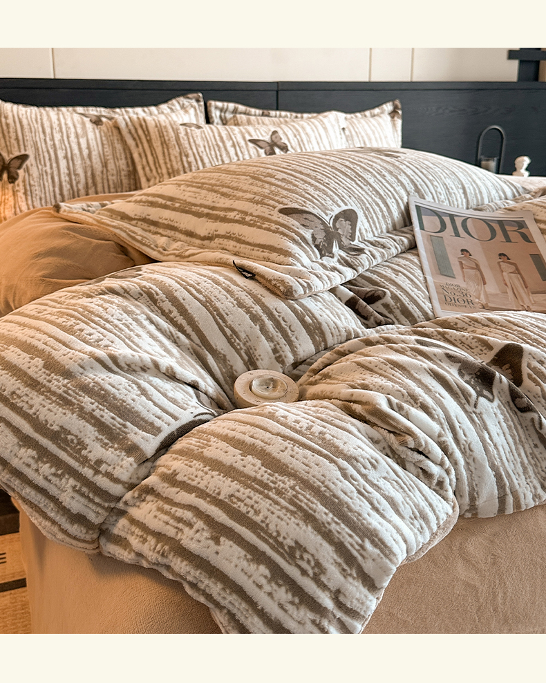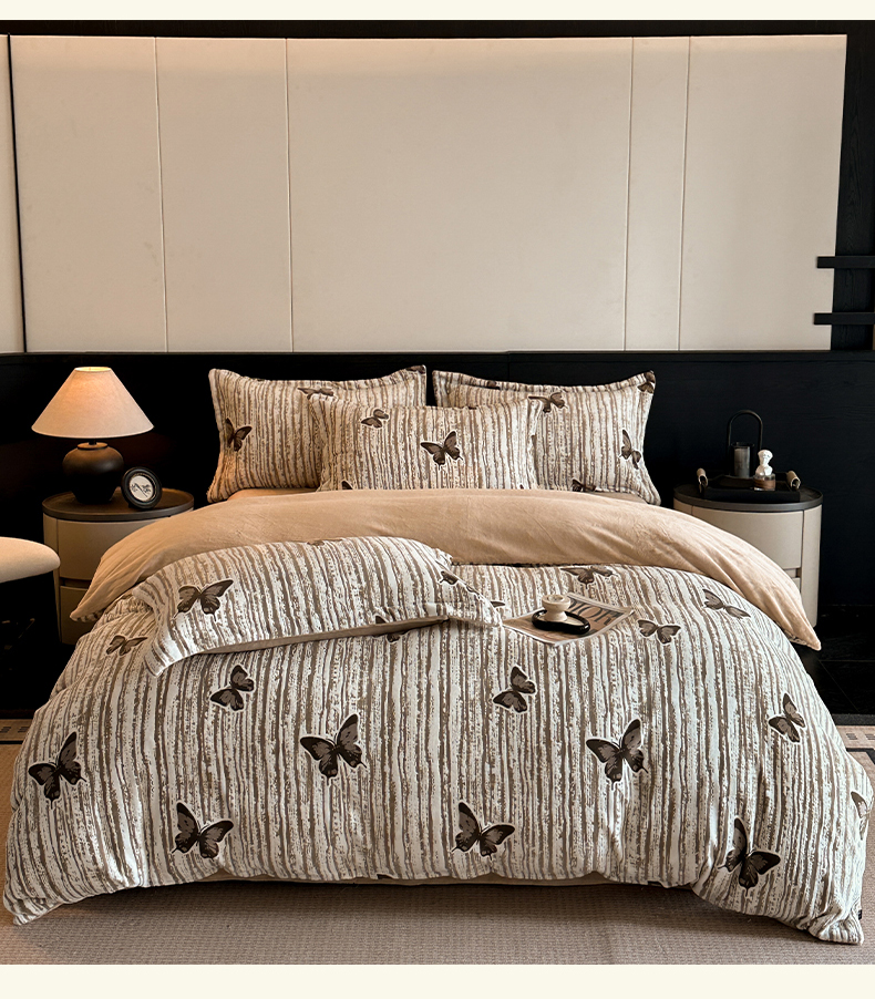 当前位置: 91家纺网 > 商品网购 > 床品套件 > 四件套 > 牛奶绒四件套 > 格真 2025秋冬新款高克重雕花牛奶绒四件套 光影蝴蝶