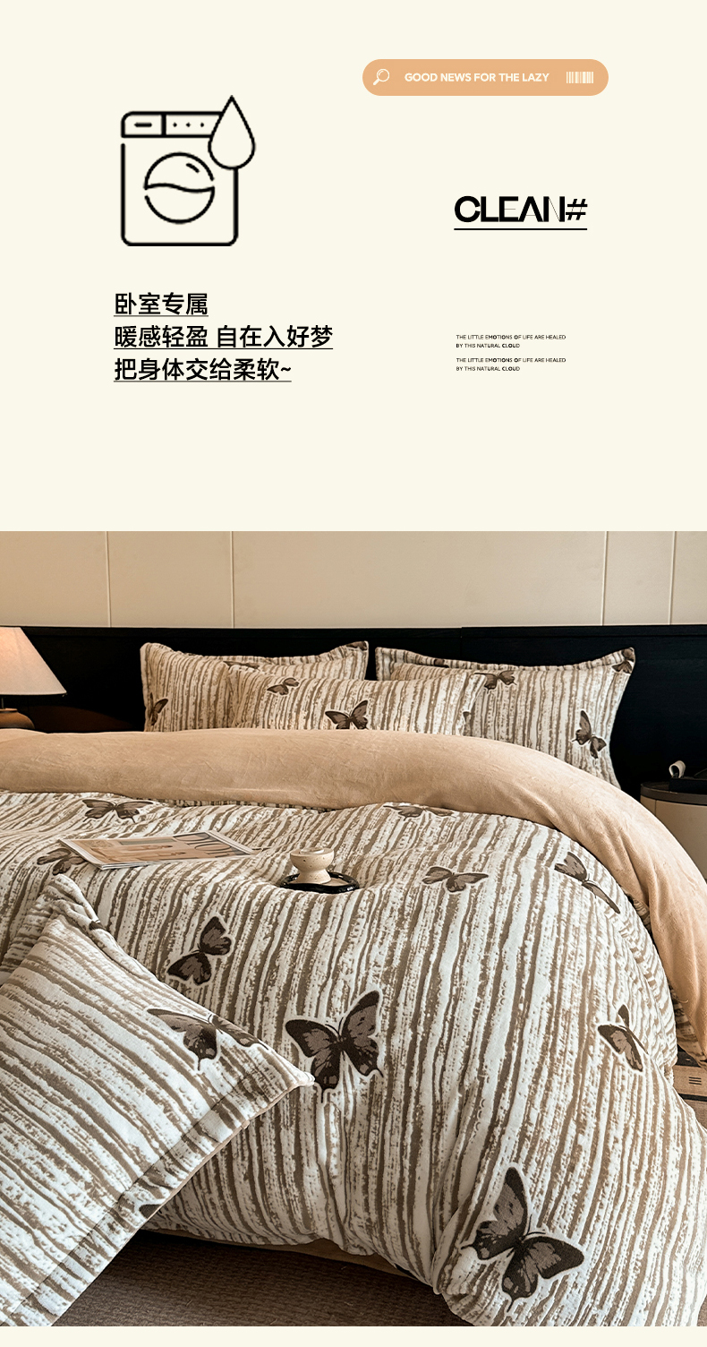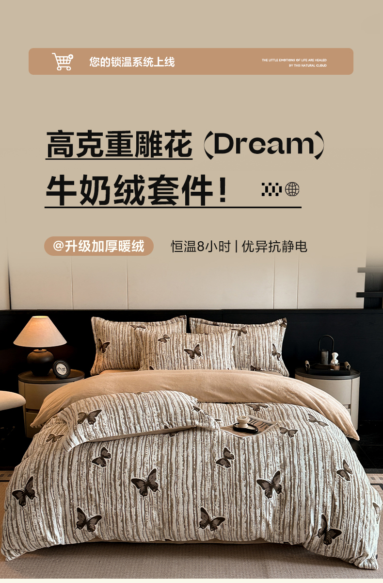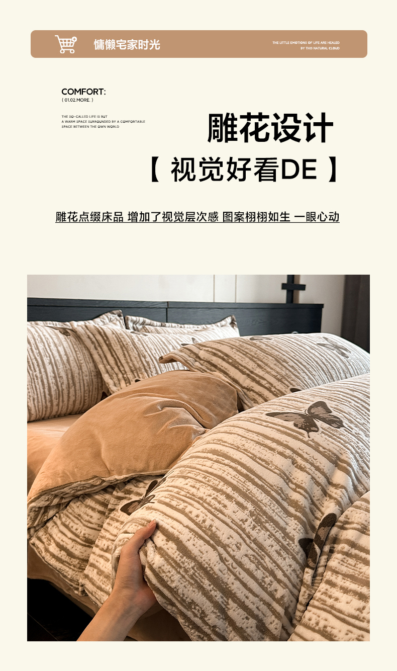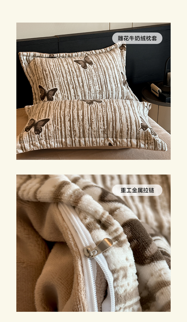 当前位置: 91家纺网 > 商品网购 > 床品套件 > 四件套 > 牛奶绒四件套 > 格真 2025秋冬新款高克重雕花牛奶绒四件套 光影蝴蝶