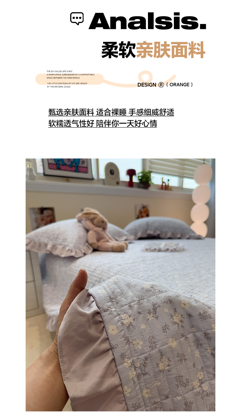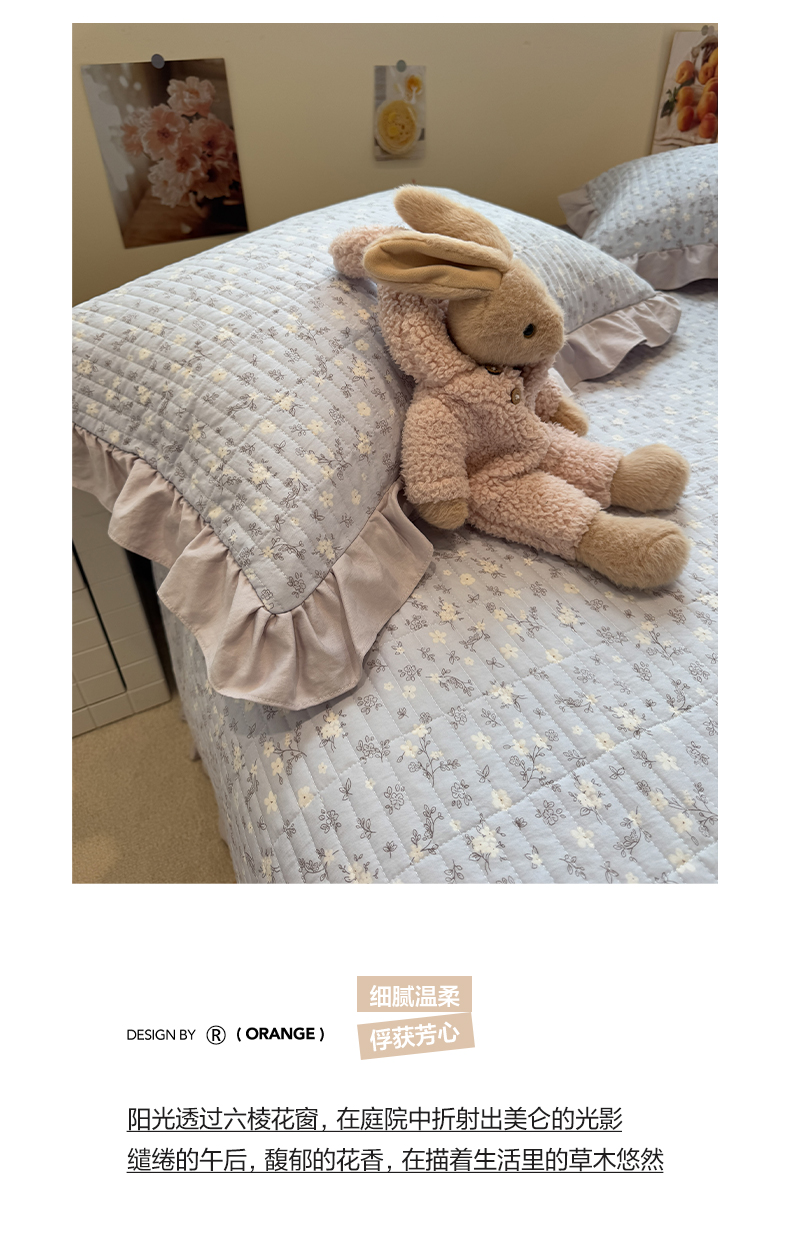 (总)一加一 2025新款全棉色织简约风艾阳绒抗菌被芯,浅兰韵律,桃之夭天,悠然时光