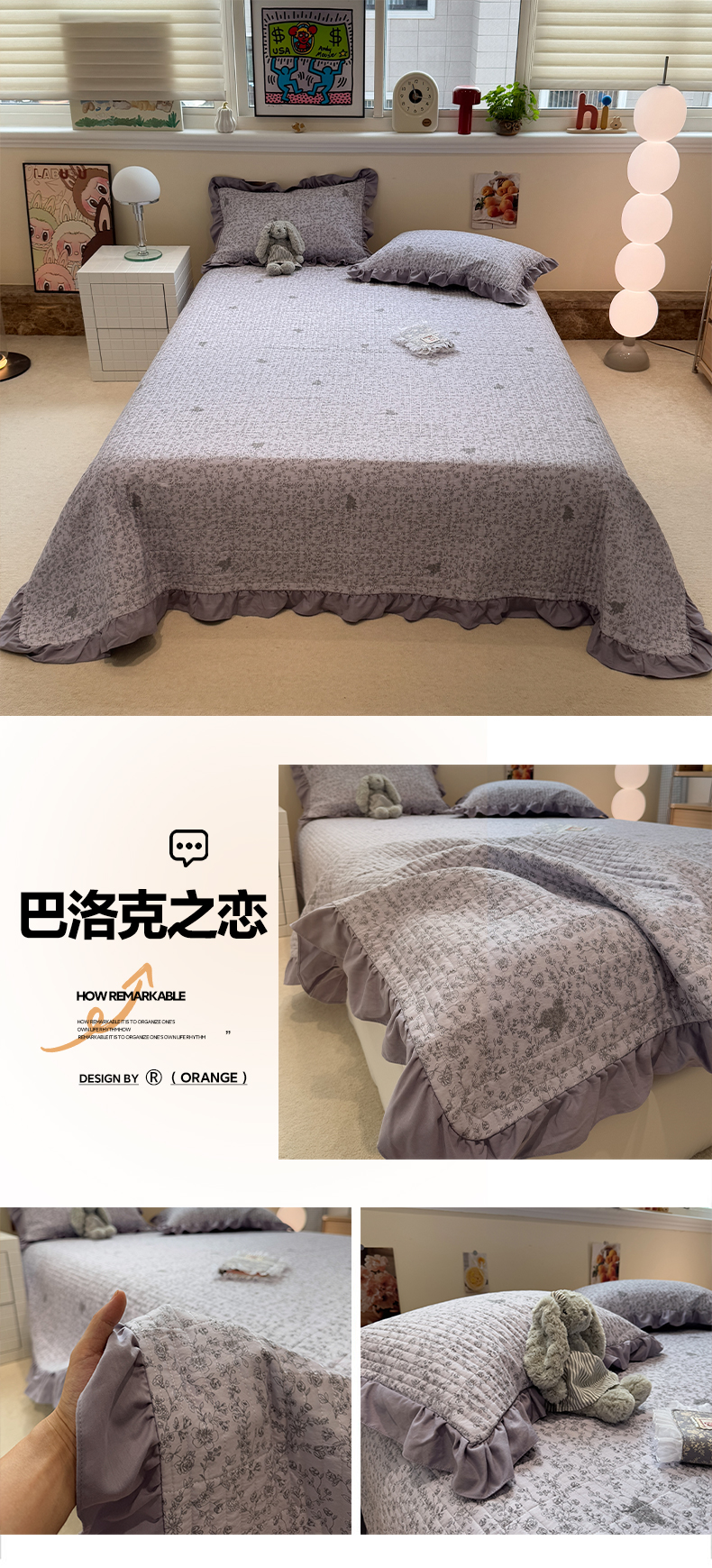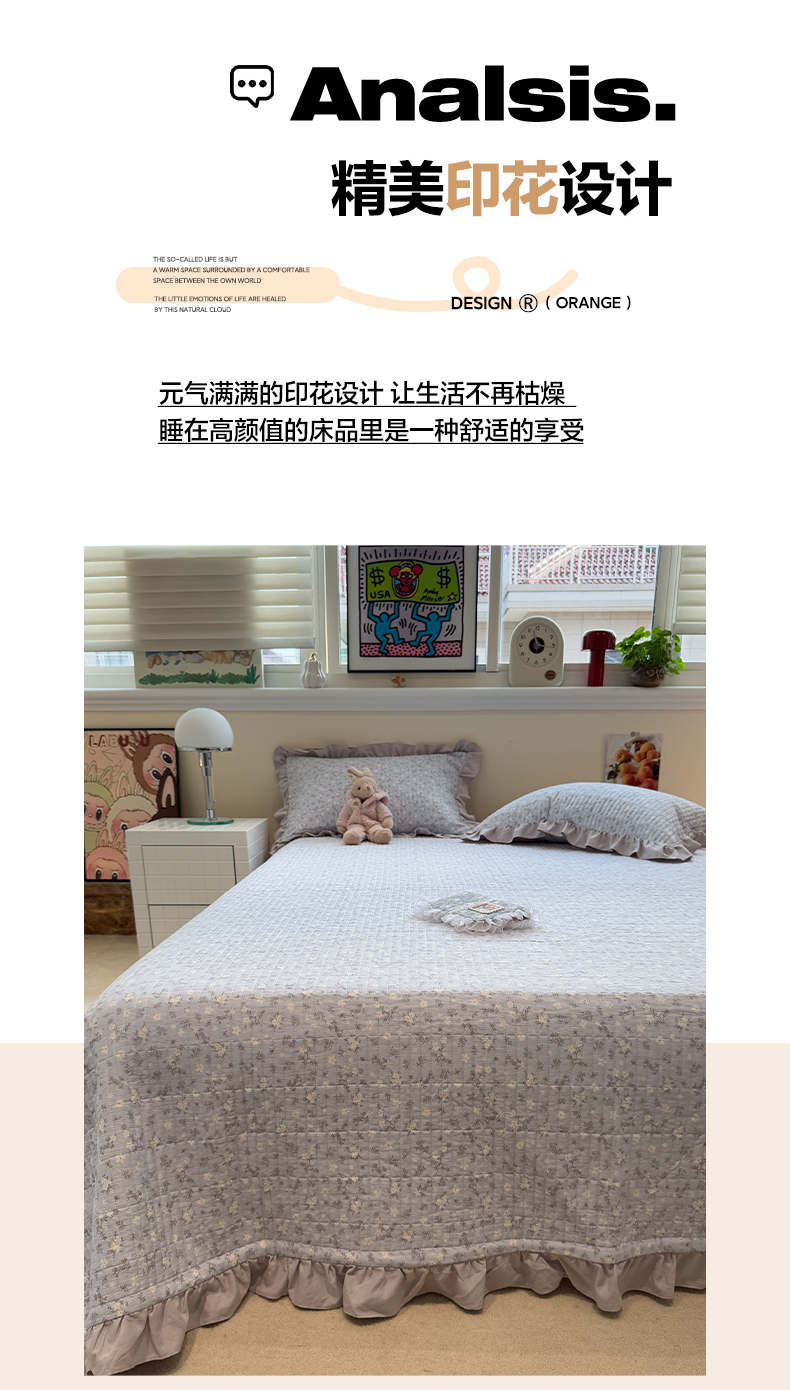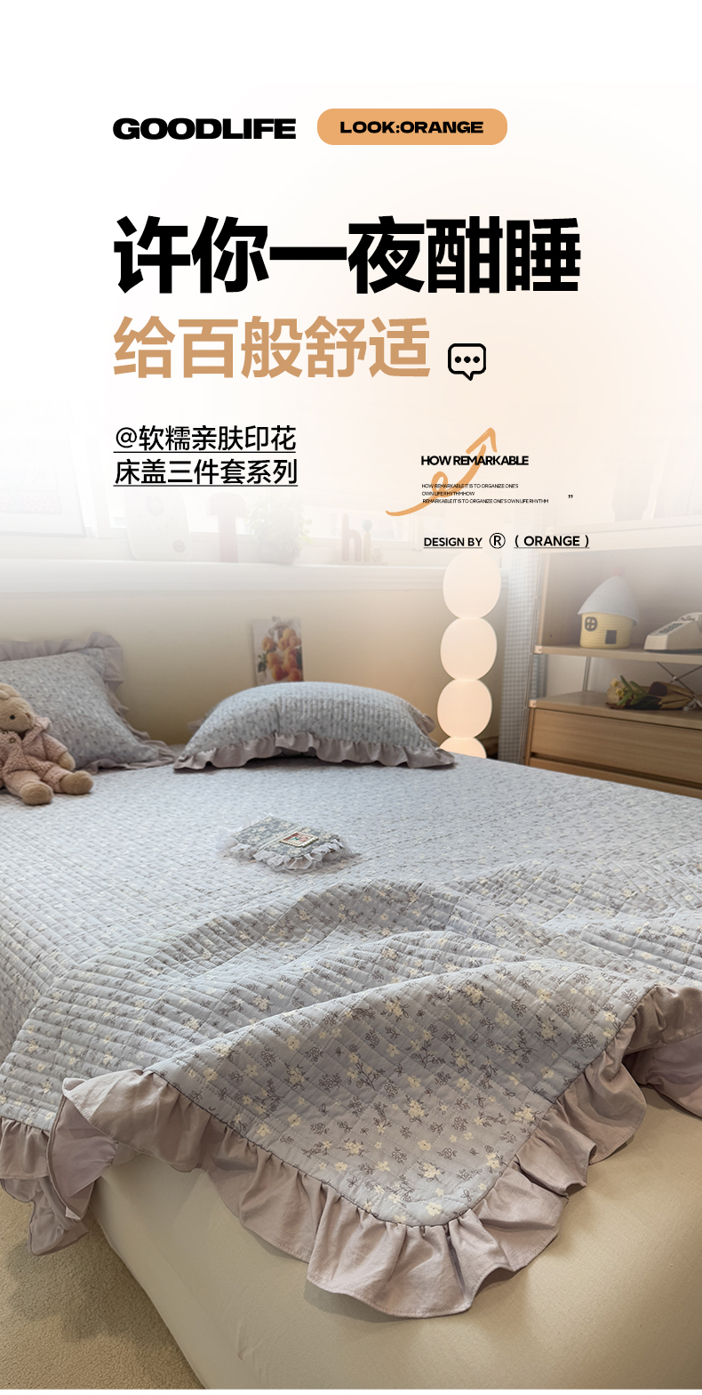 商品名称:一加一 2025新款软糯亲肤印花床盖三件套 晴天兰