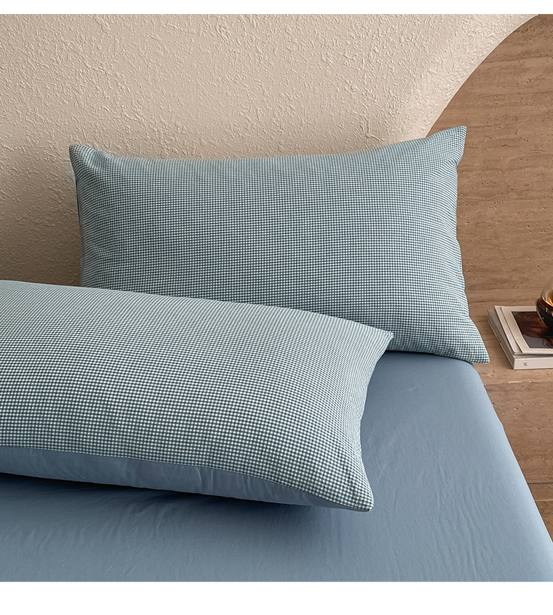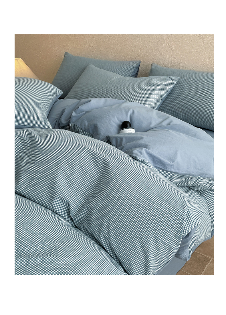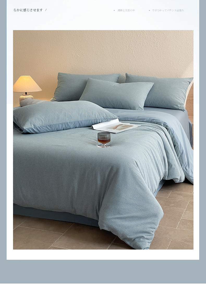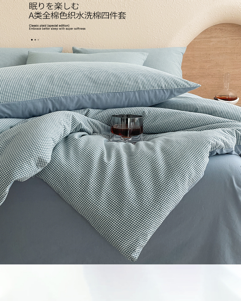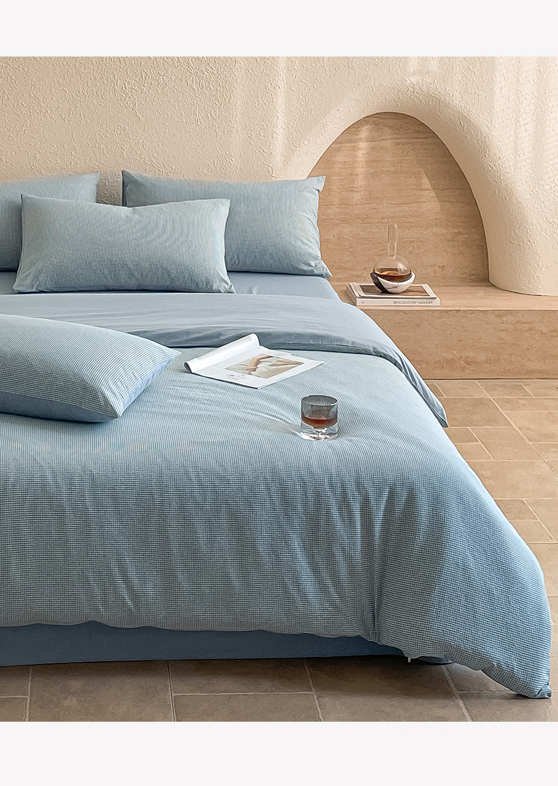 曲之慕 2025新款简约纯色全棉纯棉色织水洗棉四件套 维希格调-蓝