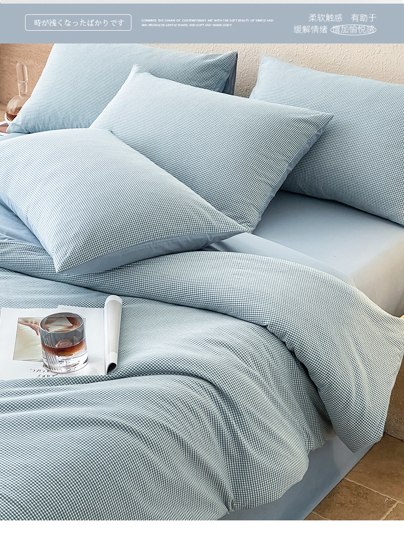 商品名称:曲之慕 2025新款简约纯色全棉纯棉色织水洗棉四件套 维希格调-蓝