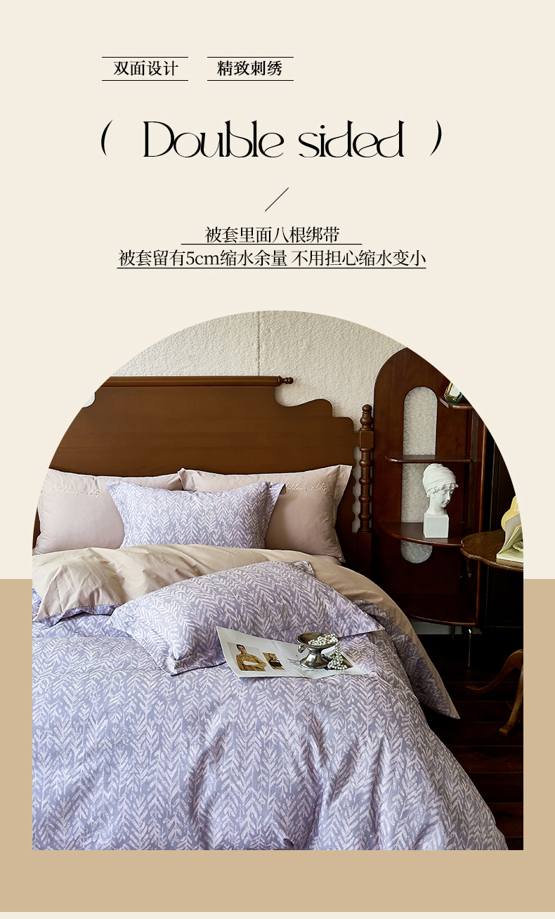 (总)由丽家纺 2025新款数码印花双层边拼角活性数码印花四件套(控价券后399起),浮世-粉,浮世-灰,浮世-紫,叶景-粉,叶景-紫