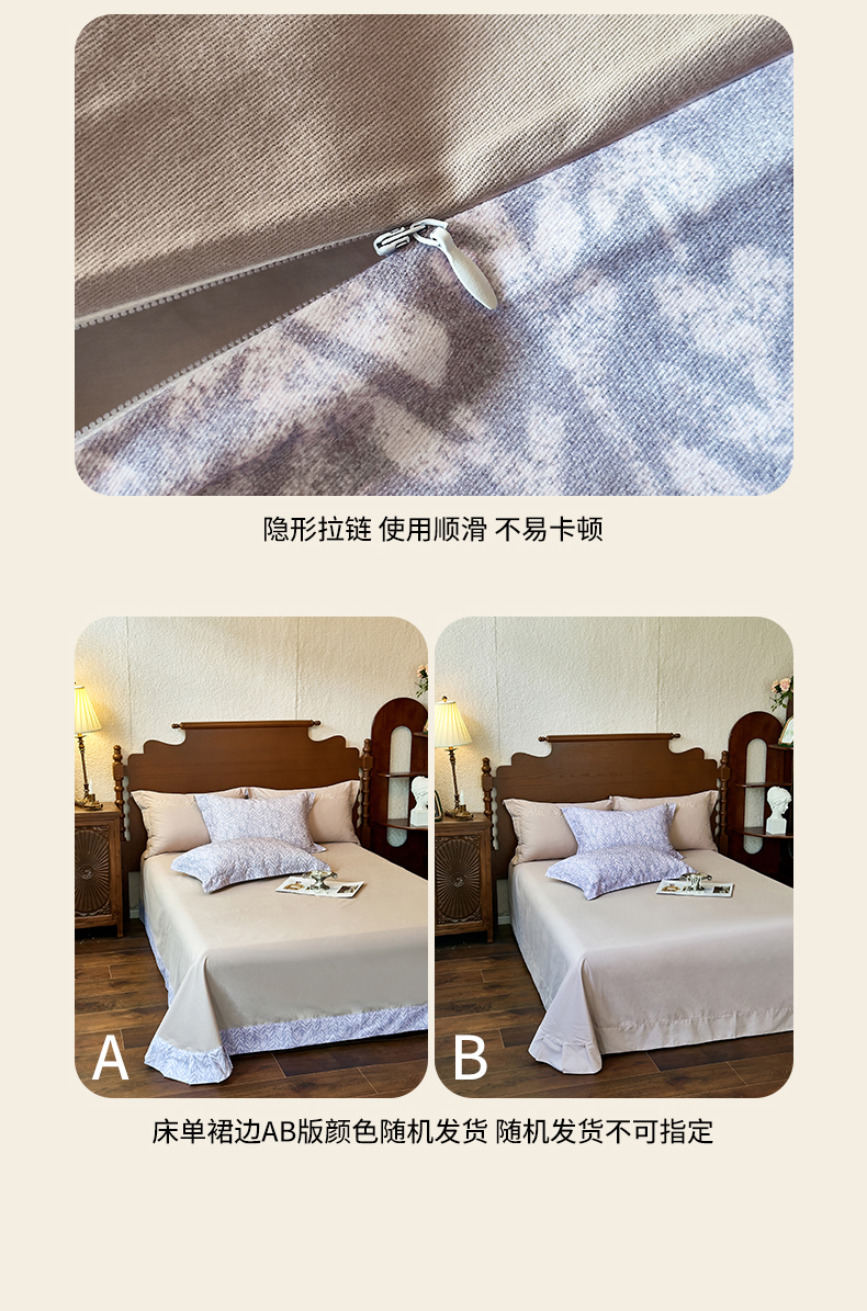 (总)由丽家纺 2025新款法式花边款全棉纯棉磨毛四件套,浆果,浪漫人生-粉,浪漫人生-米,茵然-豆沙,茵然-咖,语棠-米,珍妮-咖,珍妮-绿,紫缦