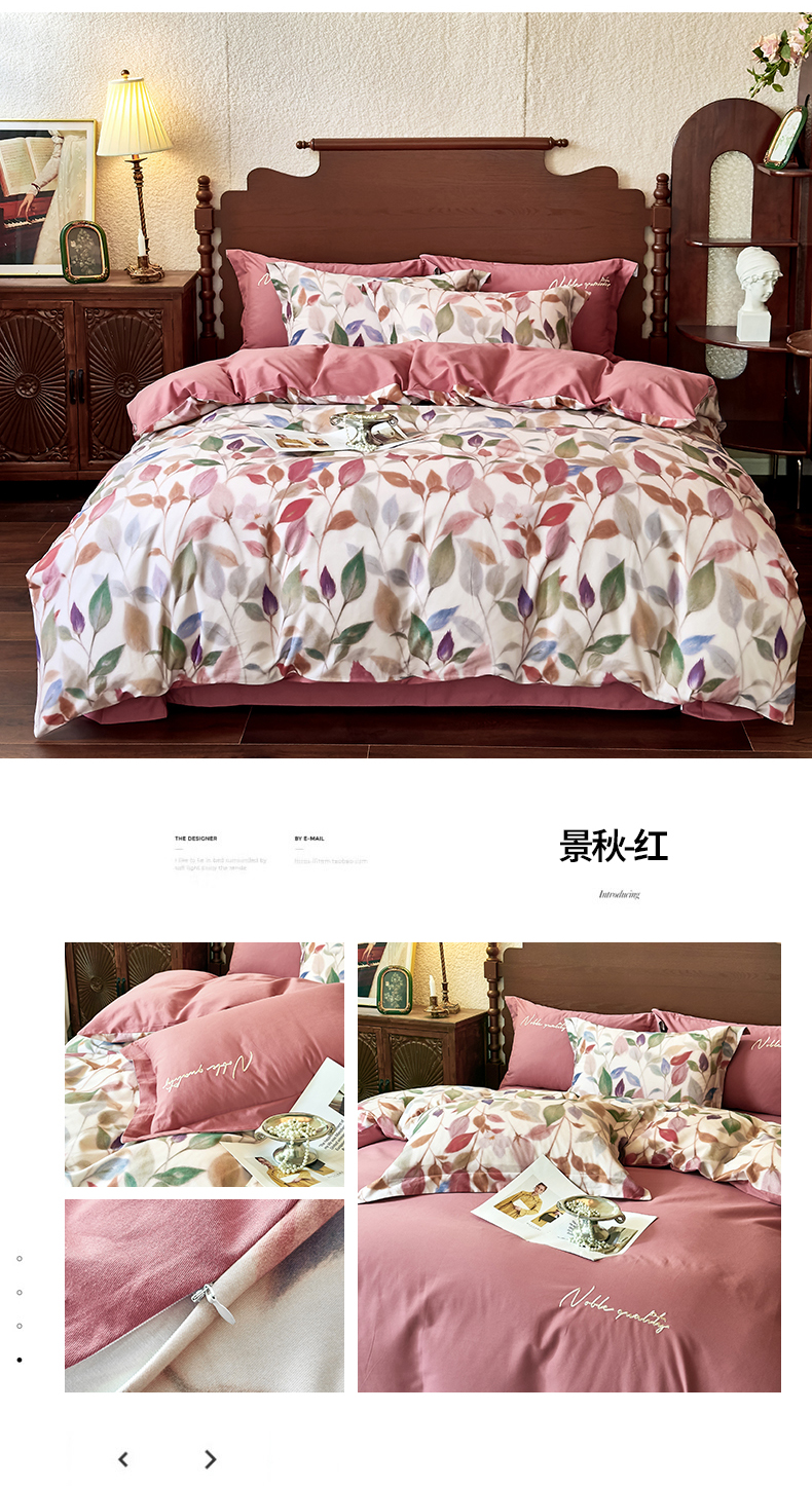 (总)由丽家纺 2025新款亲肤舒适全棉纯棉臻棉数码印花四件套系列,繁花似锦,感棉-粉,金溪-灰,金溪-咖,茂林-兰,明羽-黄,沐恩-绿,野玫瑰-紫,感棉-绿,玫瑰颂-粉