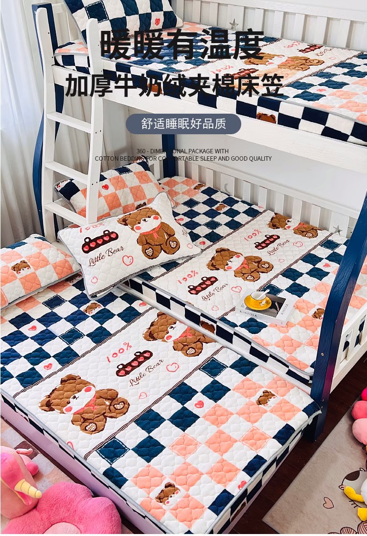 小虾米 2025新款加厚牛奶绒夹棉床笠单床笠床笠单件 快乐熊宝