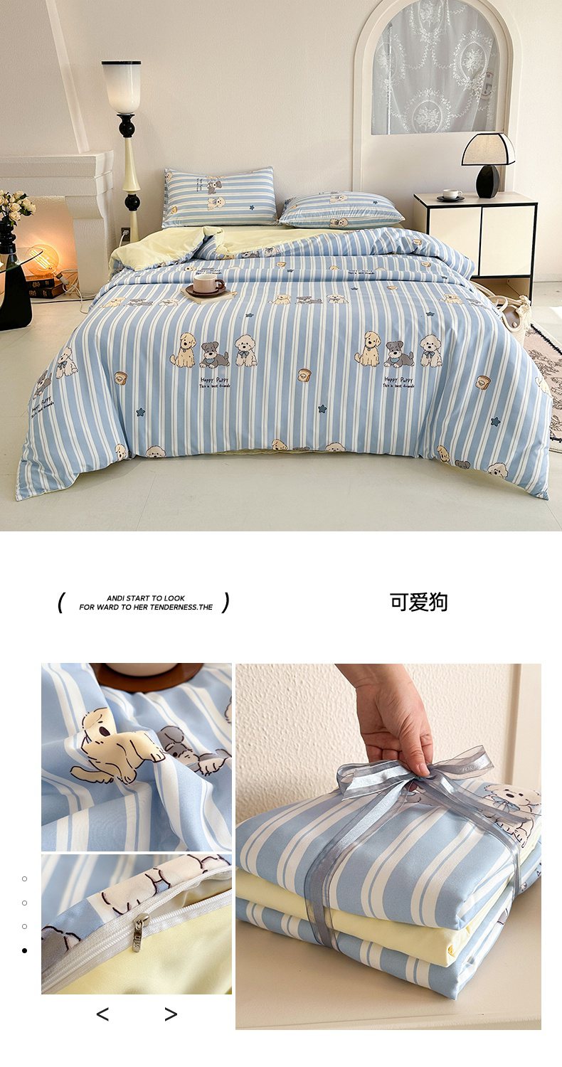 当前位置: 91家纺网 > 商品网购 > 床品套件 > 四件套 > 水洗棉四件套 > 梵克保罗 2025新款ins风亲肤卡通条格印花水洗棉系列四件套-风格三 可爱狗