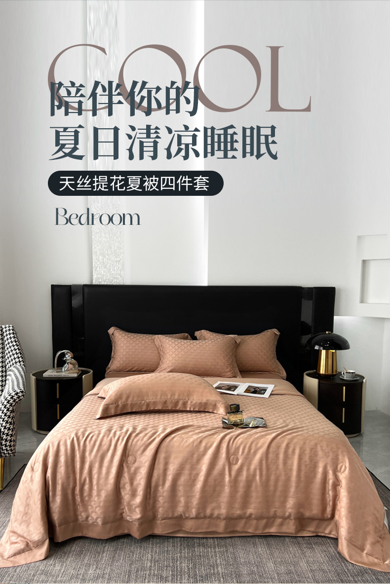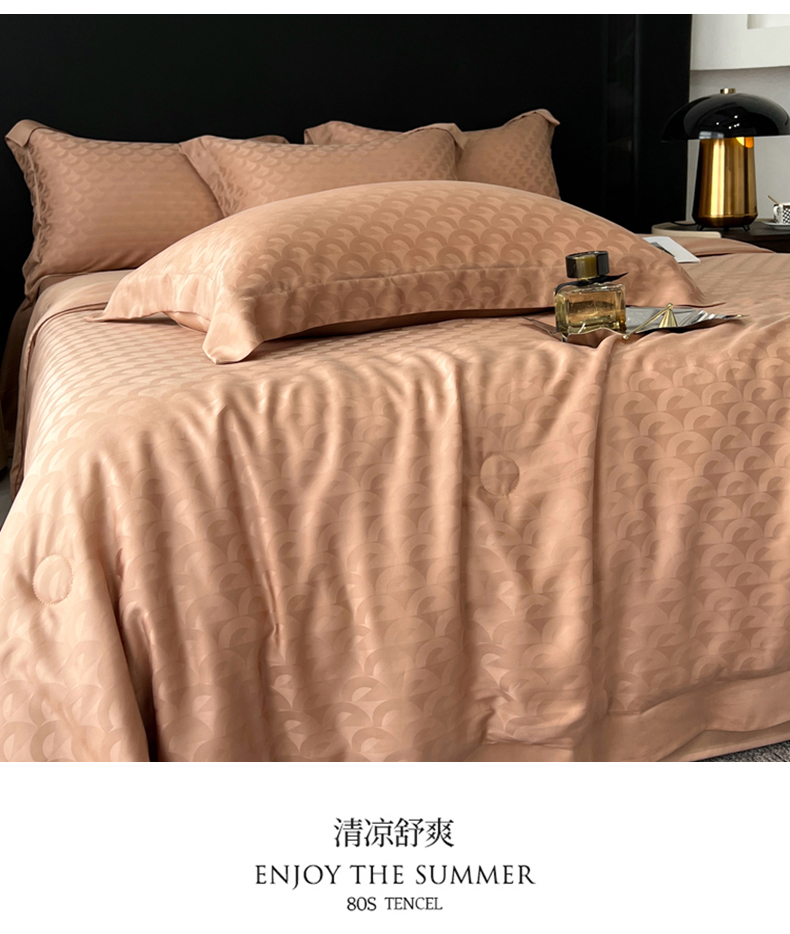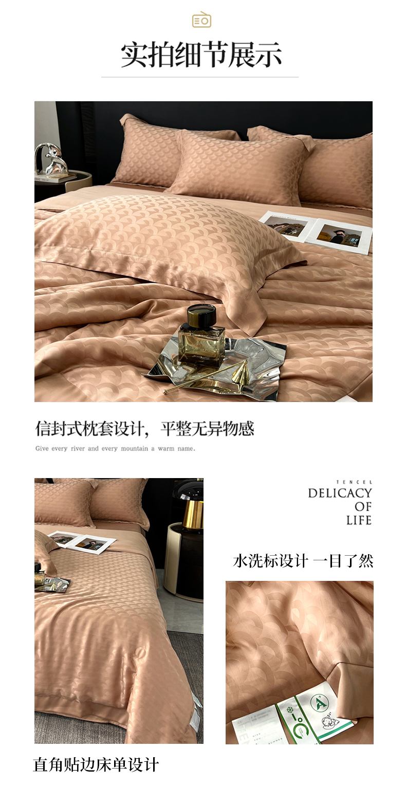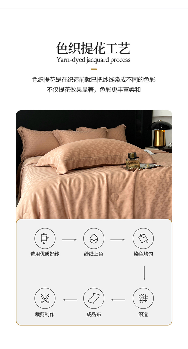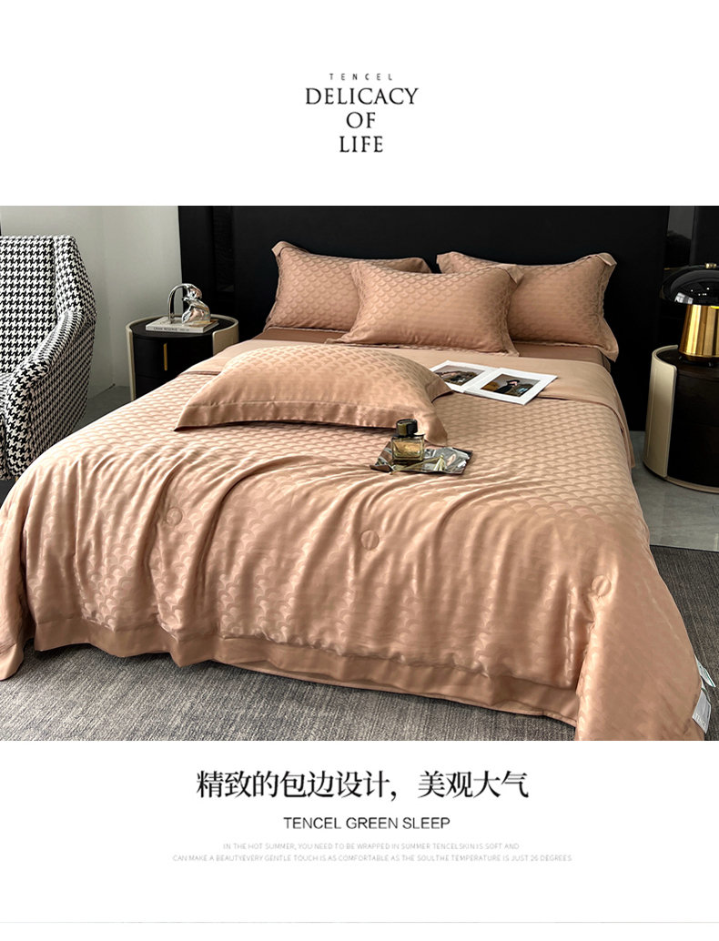 • 91家纺网 家纺一手货源 找家纺 梵克保罗 2025春夏新款莱赛尔兰精天丝提花单夏被空调被夏被四件套 女神咖