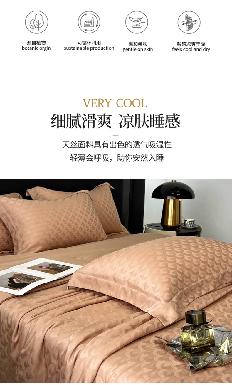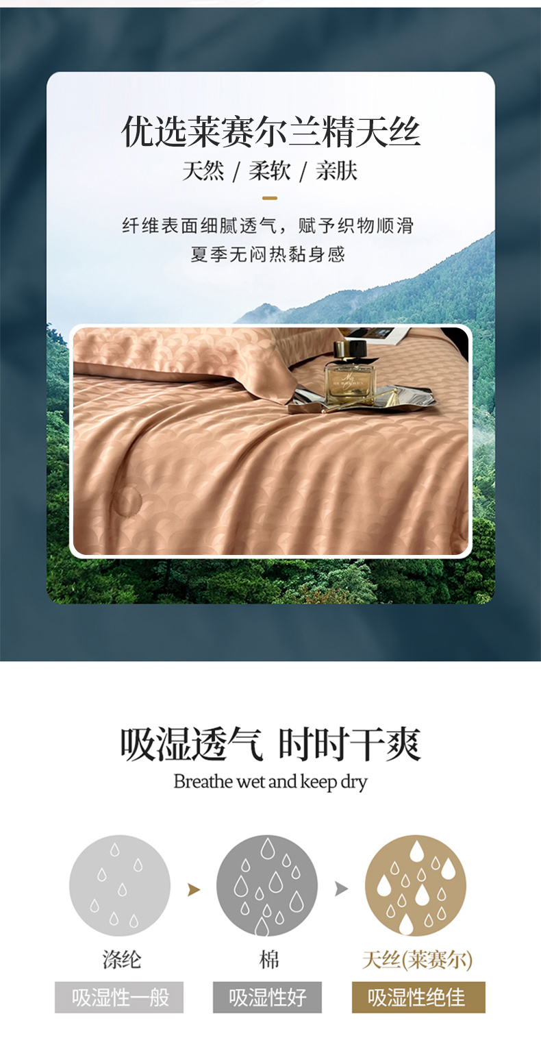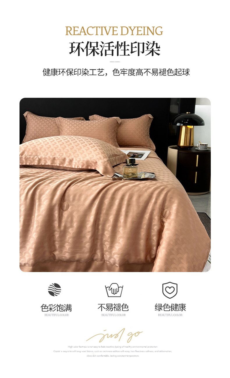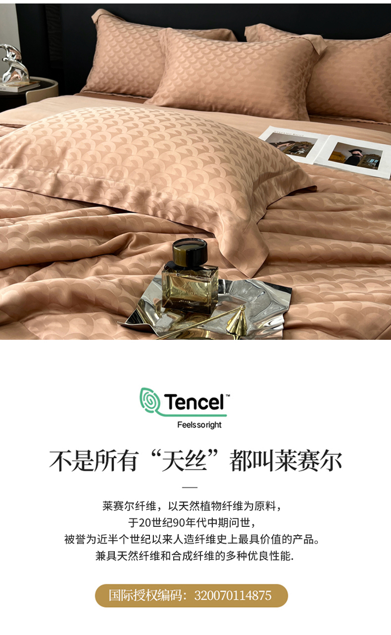 • 91家纺网 家纺一手货源 找家纺 梵克保罗 2025春夏新款莱赛尔兰精天丝提花单夏被空调被夏被四件套 女神咖